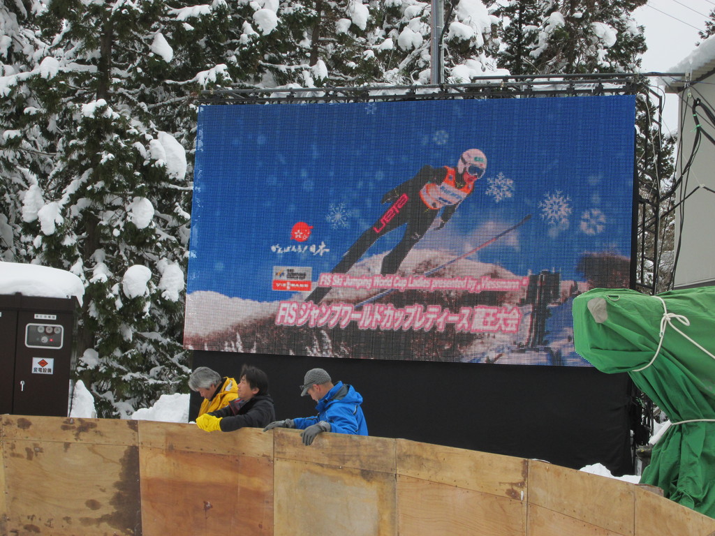 1月31日19時15分上ノ台ゲレンデで行われる雪と炎の饗宴大ジャンプ台の作業が始まりました、20時30分花火も打ち上げられます!!!