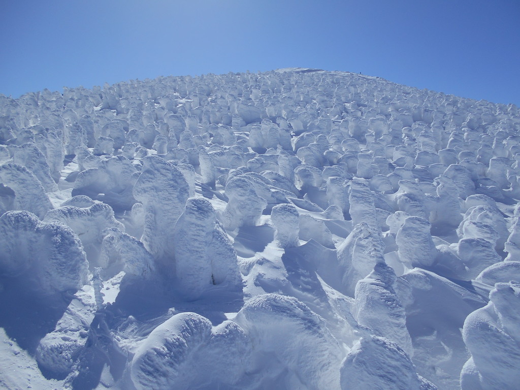 地蔵山に樹氷が残っています、沢山のトレッキングをしている人が樹氷地帯に入っていました!!!