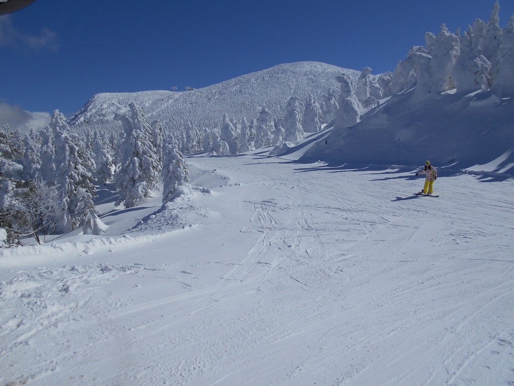 コース標識98番付近迷カメラマンが樹氷の側に侵入し良い写真がとれませんでした!!!山頂駅前の樹氷に座って写真を写していたバカ者もいました!!!