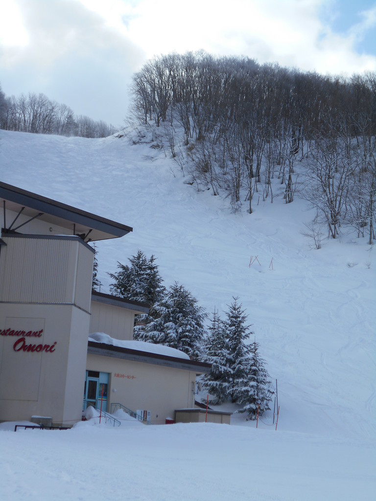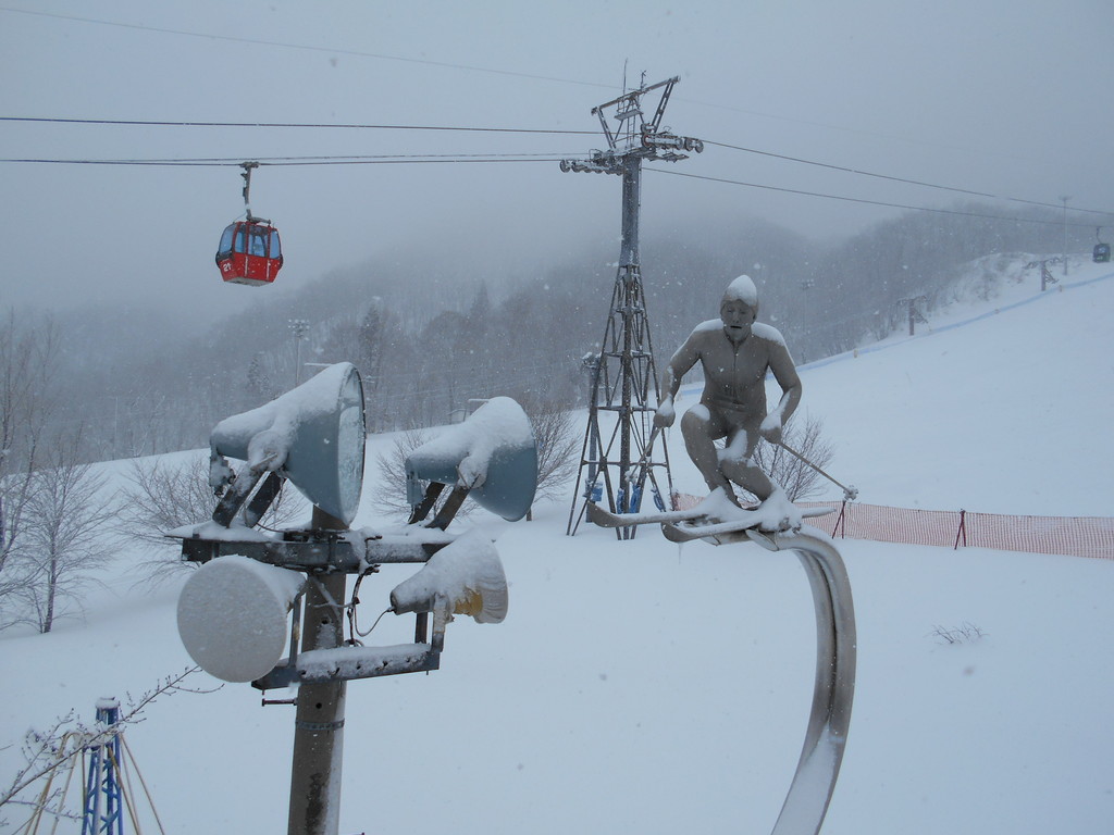 上ノ台温泉第二高速クワット脇のスキー滑走の像スキーヤーに雪が着きました!!!