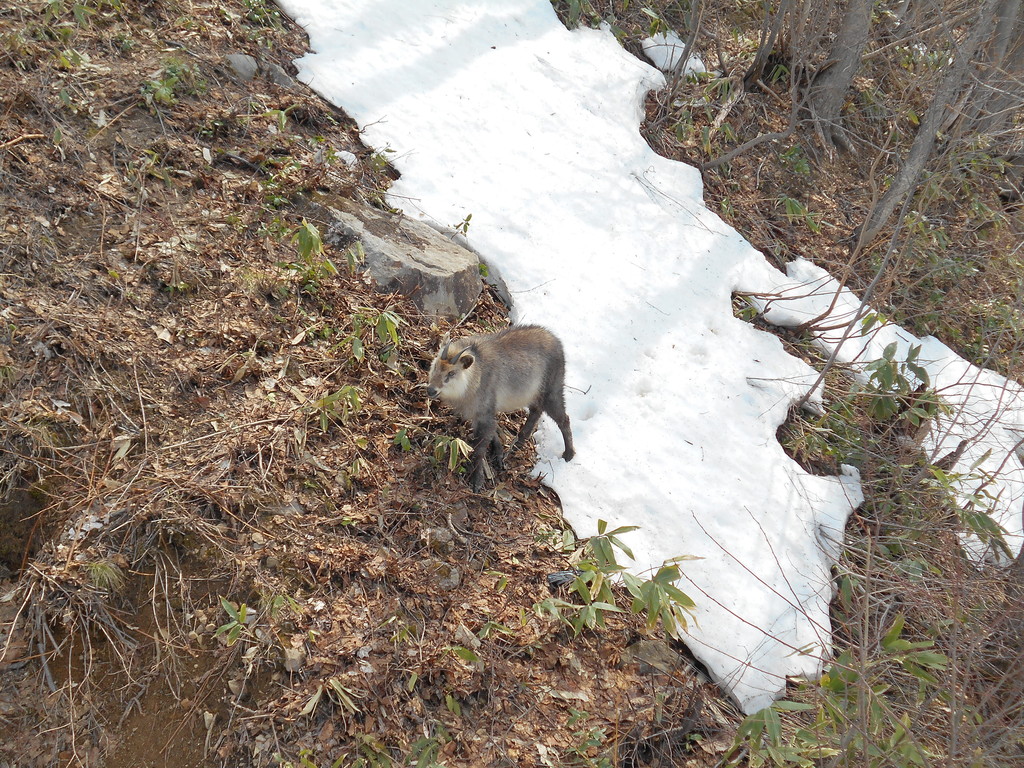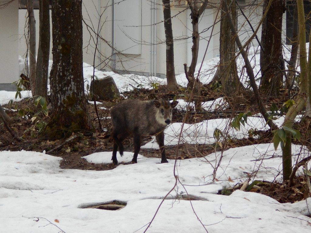 昨日庭に新緑の芽を食べにかもしかが来ていました!!!