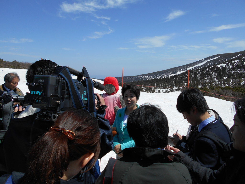 地蔵山頂蔵王地蔵尊前で吉村山形県知事が記者会見!!!