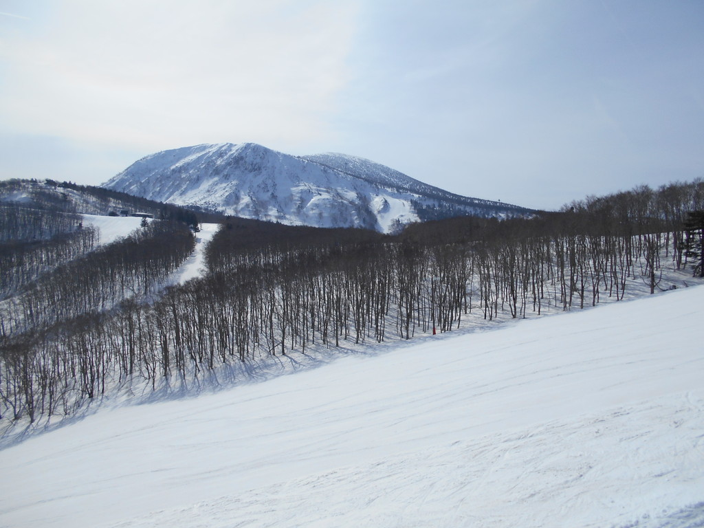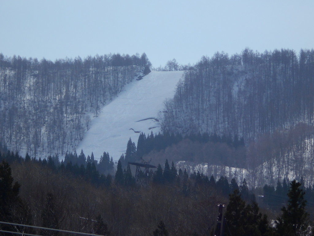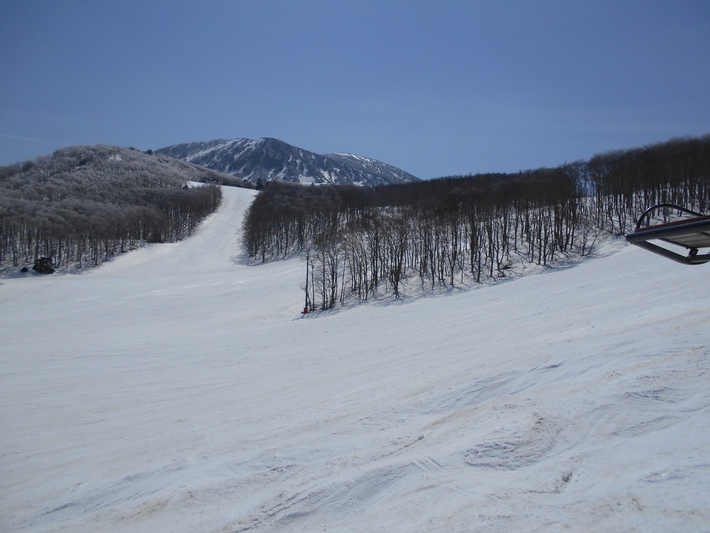 明日パラダイスリフト・片貝リフトが運行します、トニーザイラーコース・迂回コース滑れます!!左三宝荒神山・右地蔵山です・手前右は大平コースです。