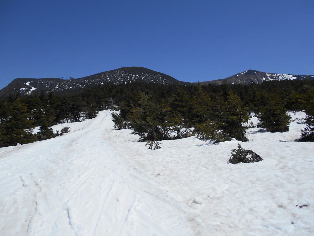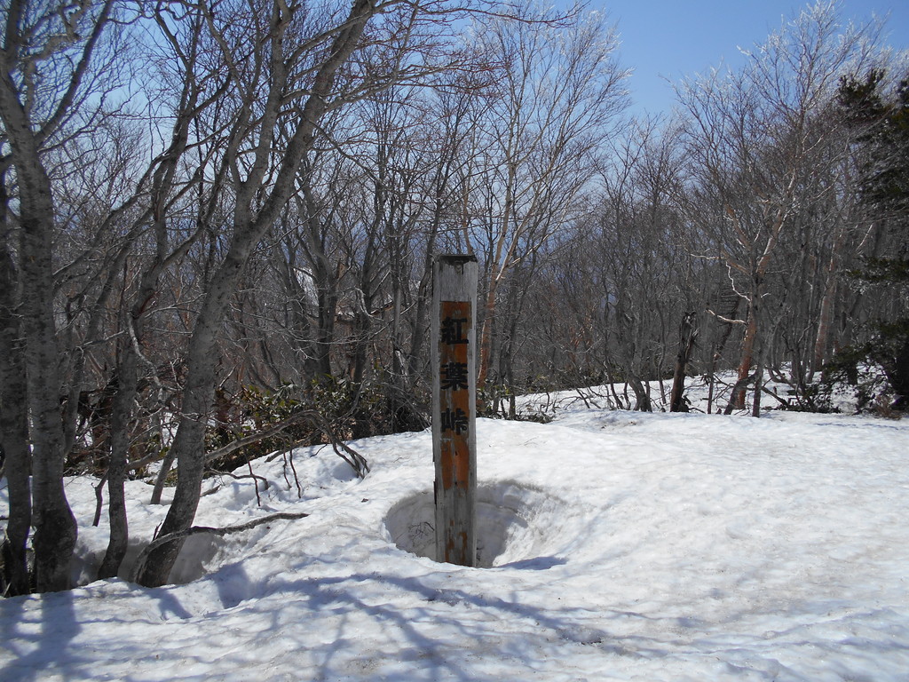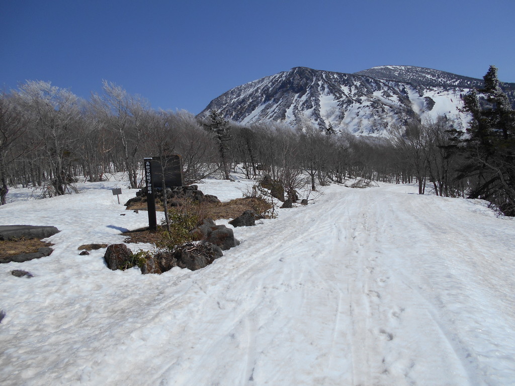 蔵王地蔵尊様と右は地蔵山です、7子地蔵様も雪の上に出ました。ザンゲ坂滑り降りましたが2ヶ所約15mスキーをぬいで歩きました。