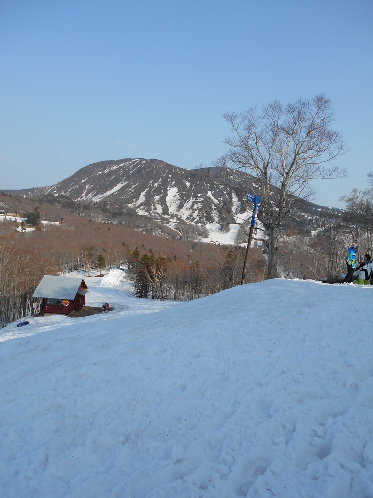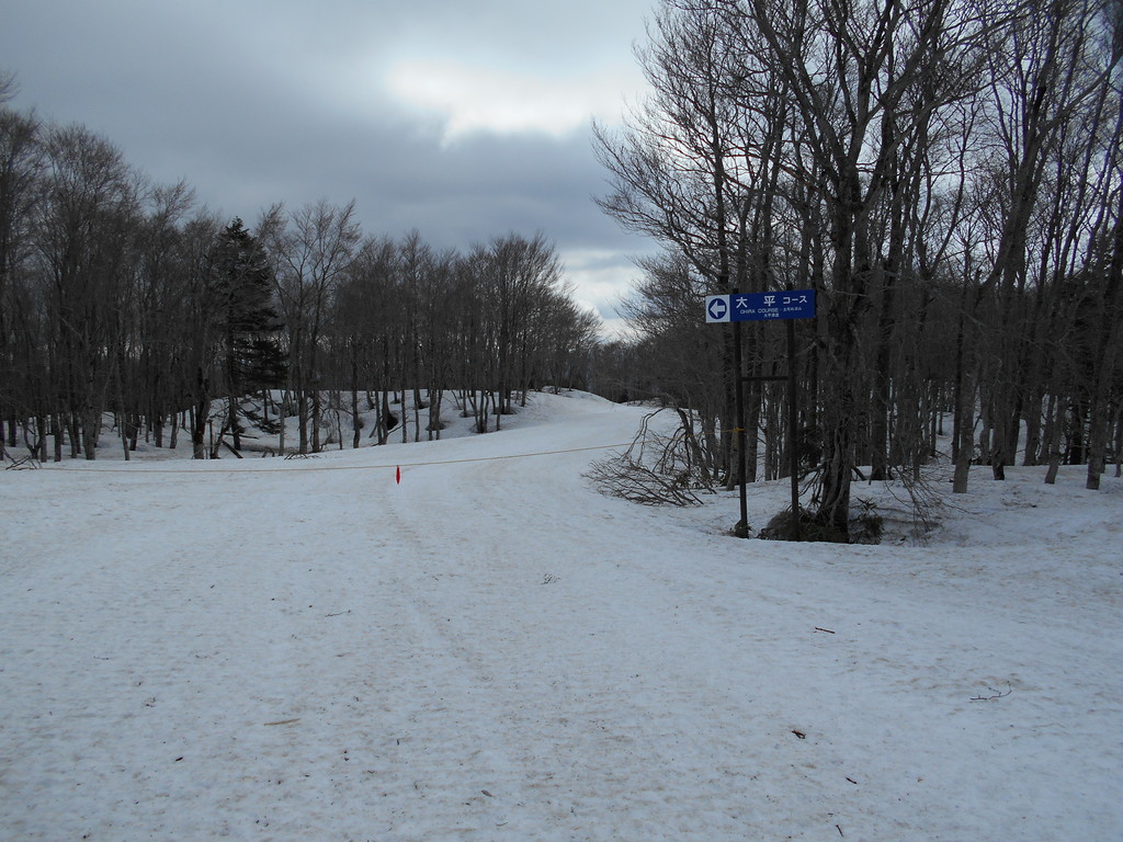 三五郎ゲレンデから大平コース連絡コースの看板撤去されロープが張られました昨日大平コース滑り降りました・前面滑走可ですが上ノ台・サンライズ・中森ゲレンデ雪が無くなり歩きます。今日からは帰りもゴンドラに乗車が良いと思います!!!
