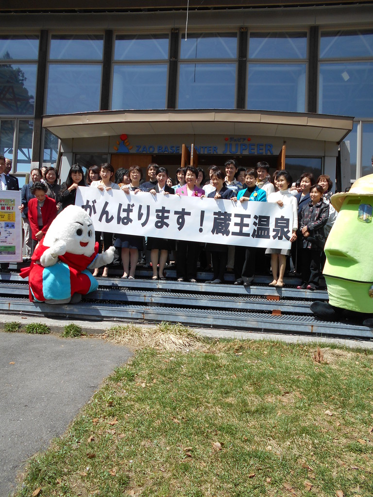 吉村知事がじゅっきーちゃん・女将・平井山形県観光物産会長他皆さんと約1km蔵王高湯通り・樹氷通りを見学!!!