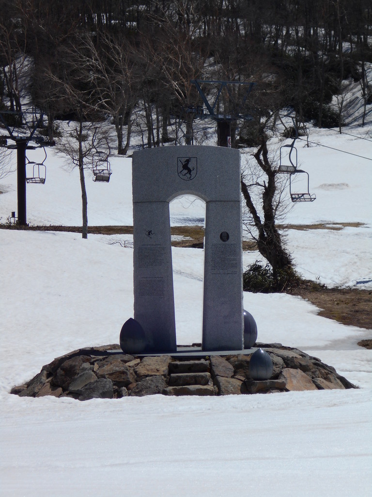 パラダイスリフト昨日で終了しましたがトニーザイラーコースは全面滑走可・トニーザイラー顕彰碑周りの3ストーン雪の上に出ました。