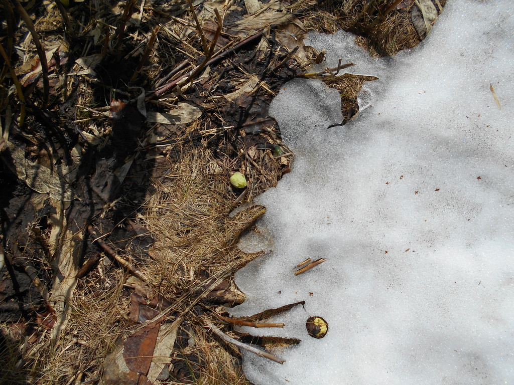 ゲレンデの雪融けした所に蕗の薹が現れました!!!