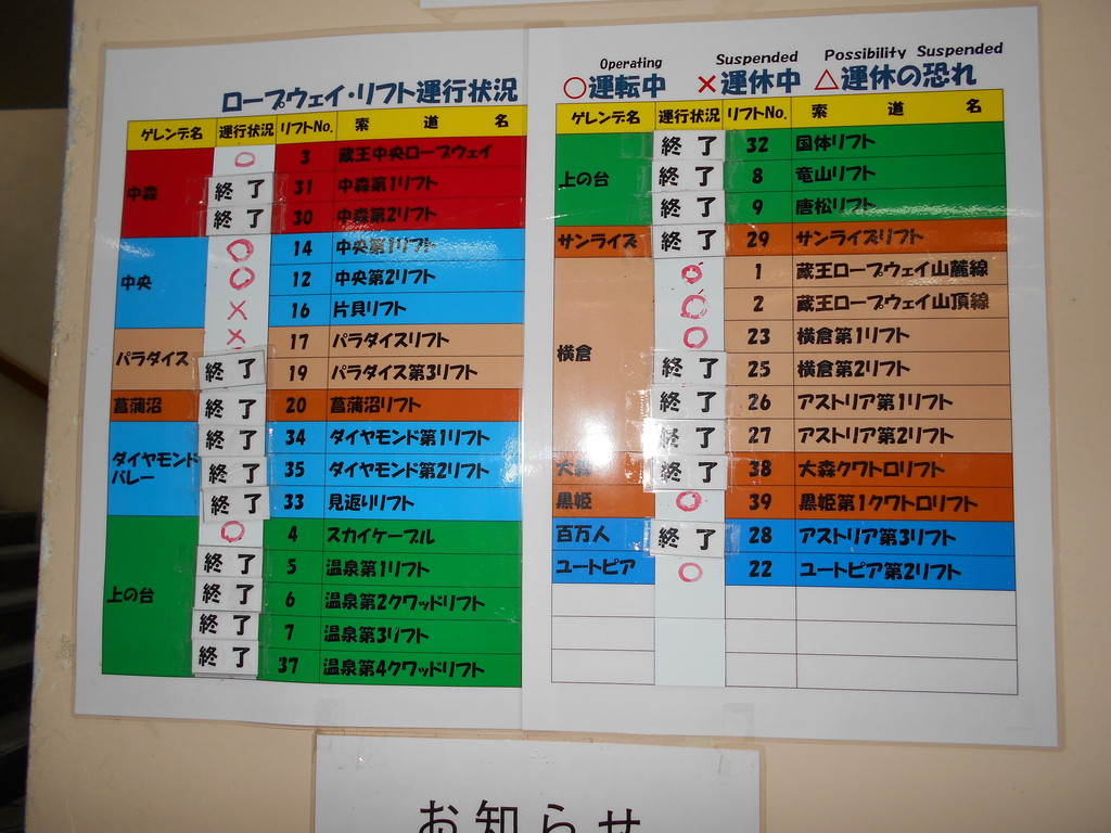 昨日からユートピア運行し横倉終了とリフトで話していましたが横倉運行でした!!!