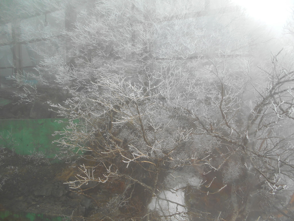 昨日は標高1,100m以上に霧氷が咲きました、鳥兜駅出口階段まだ雪の下に埋まっていました。今日もパラダイスはー8度と真冬の寒さです!!!