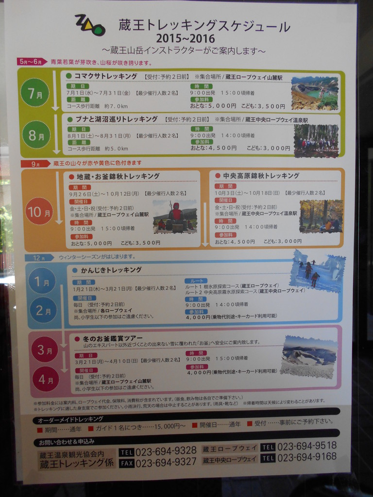 蔵王山岳インストラクター2015/2016年スケジュールが届きました。内玄関に早速掲示しました!!!