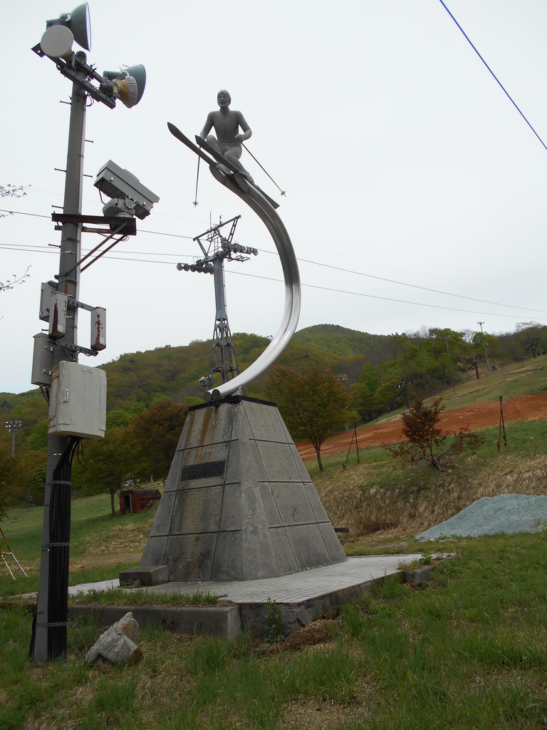 上ノ台のスキー滑走の像です、でん六豆の創業者鈴木伝六翁が寄贈してくれた毎日新聞の観光百選に蔵王温泉が山岳第一位の記念碑です。