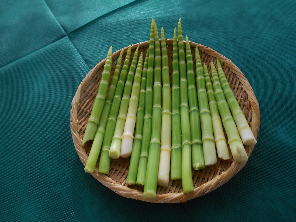 ル・ベール蔵王玄関前・朝7時・15度・晴(青空で夏の陽射しがギラギラ)・弱風・明日から横浜郄島屋で山形物産展が始まります。山形の舞妓と蔵王温泉女将会から2名の女将がお手伝いします。朝10時の横浜郄島屋オープンお出迎え・歓迎セレモニーでの山形市のPR等を行います。写真は日曜日に飯豊町蕨園で収穫してきた蕨です今シーズン1年間お客様にお出しできます!!!