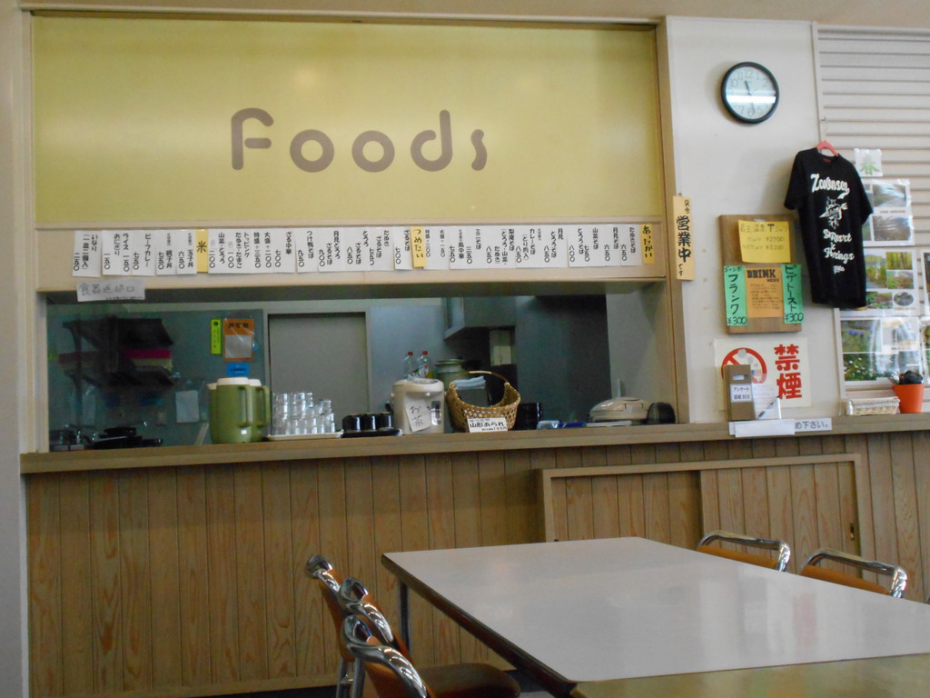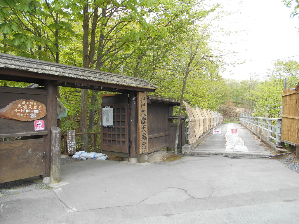 ル・ベール蔵王玄関前・朝7時・13度・雨(雨模様で濃霧で横倉の壁・龍山雲の中)・中風・トレッキングには足元が滑るので気をつけて下さい。高湯通りにある下共同浴場です、朝6時〜22時迄入浴できます、200円を入口の料金箱に入れて下さい。毎月10日・20日・30日は無料で入浴いただけます。源泉はル・ベール蔵王と同じ二度川源泉です。足湯が右側に無料でお入りいただけます。