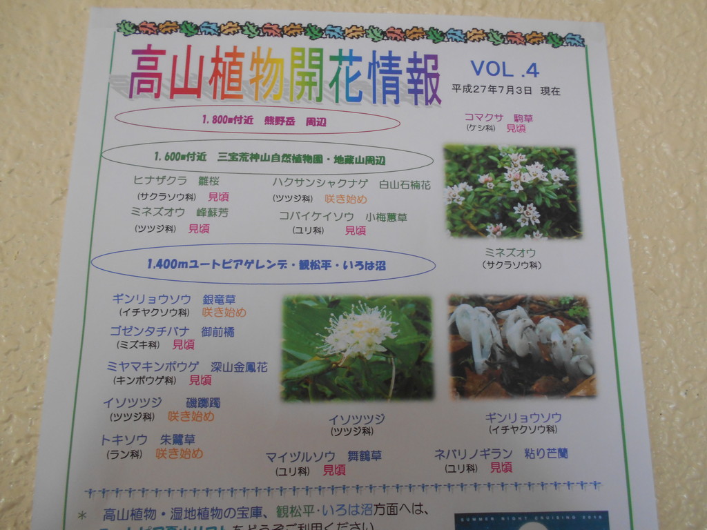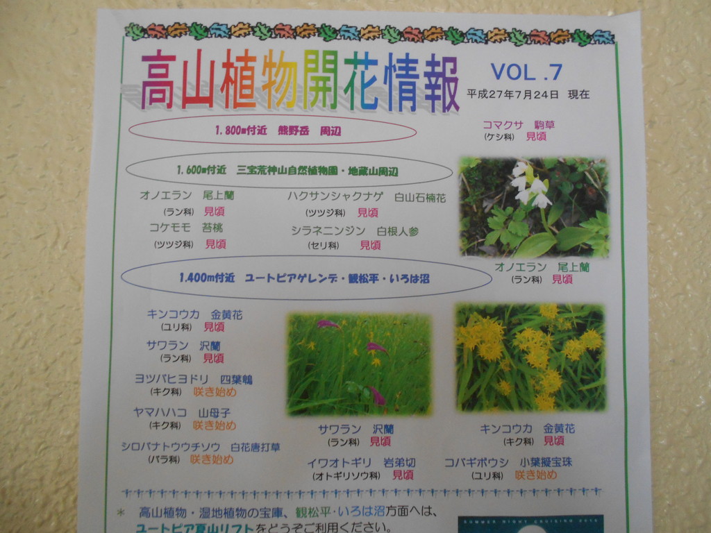 昨日高山植物開花情報VOL.7号が山麓駅から届きました。