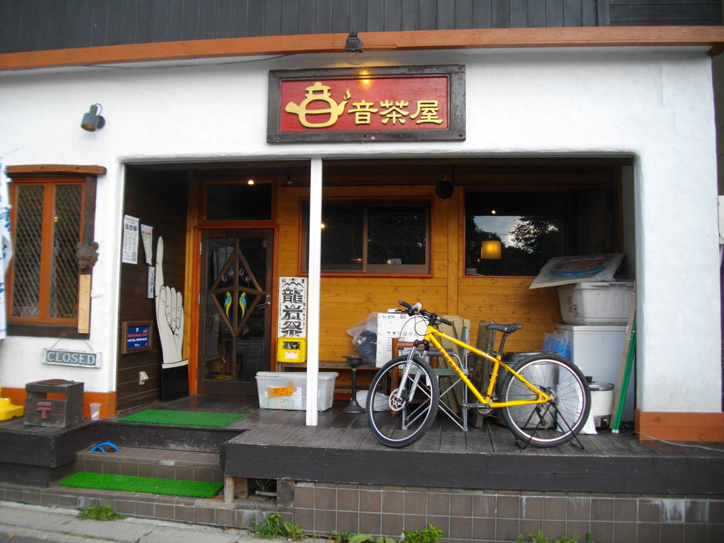 ル・ベール蔵王玄関前・朝7時・20度・晴・夏ゼミが鳴き・小鳥が囀っています・弱風、写真は樹氷通りにある音茶屋です、スナックと軽食と小物のオリジナルグッズを販売しています。海外からの観光客が夜遅くまでビールを飲みながら楽しんでいるお店です。ヤング向けです!!!