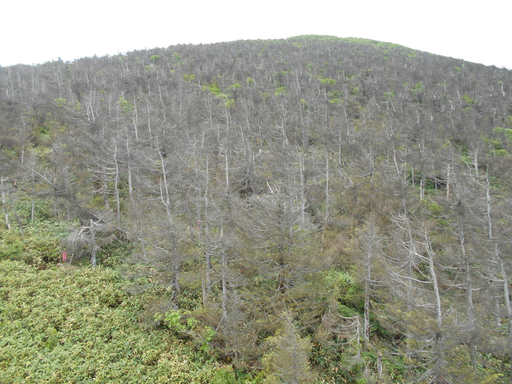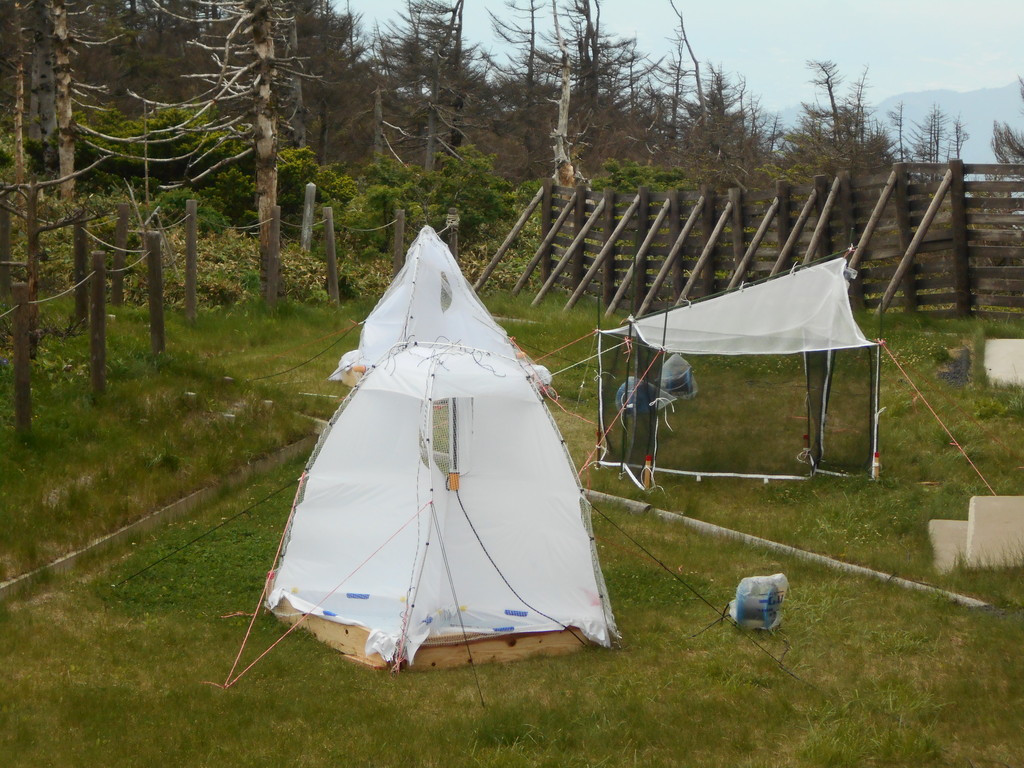 蔵山頂でアオモリトドマツのガの食害調査の為、ガを捕えるテントが2ヶ所に山形森林管理署により設置されていました。(地蔵山頂駅付近と山頂線標高1,450m付近の鉄塔下)