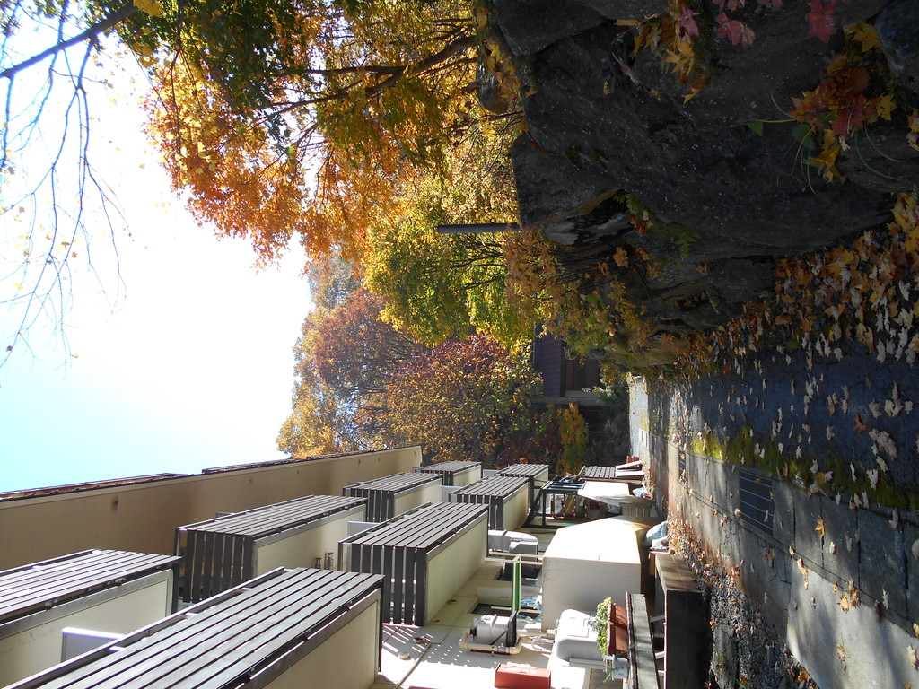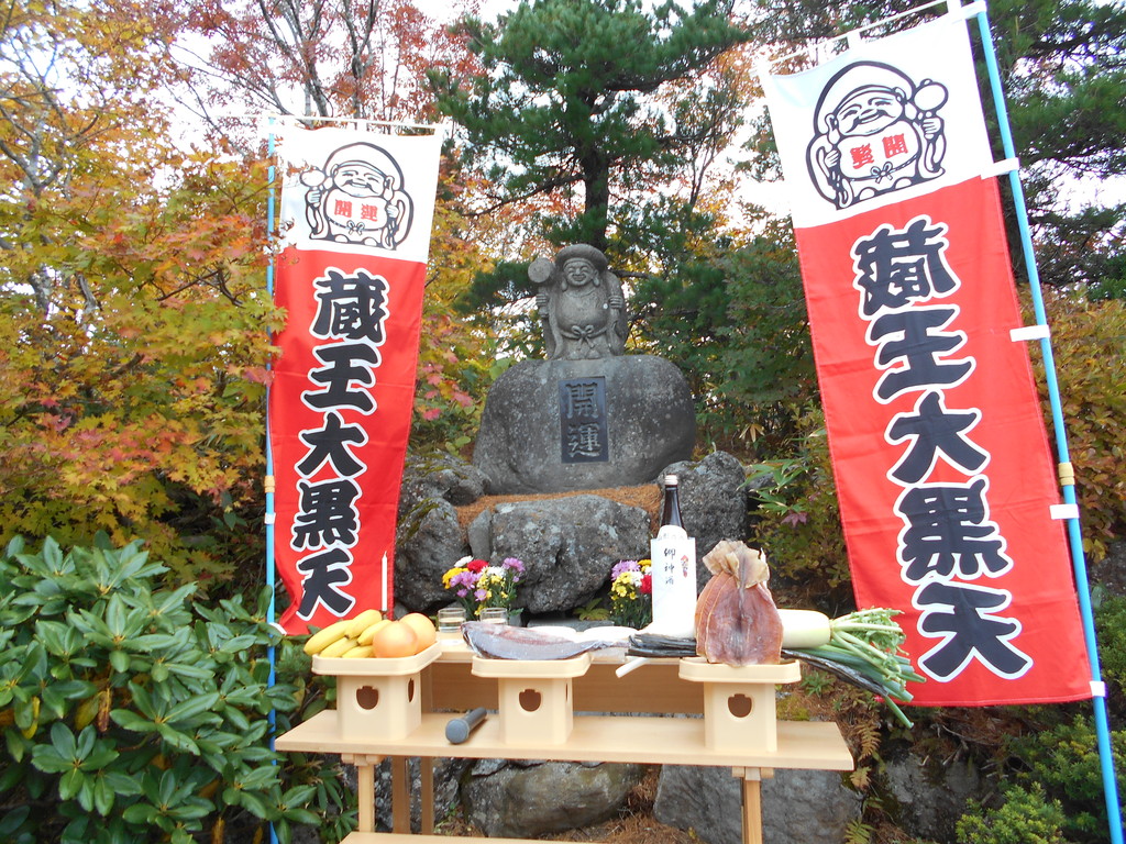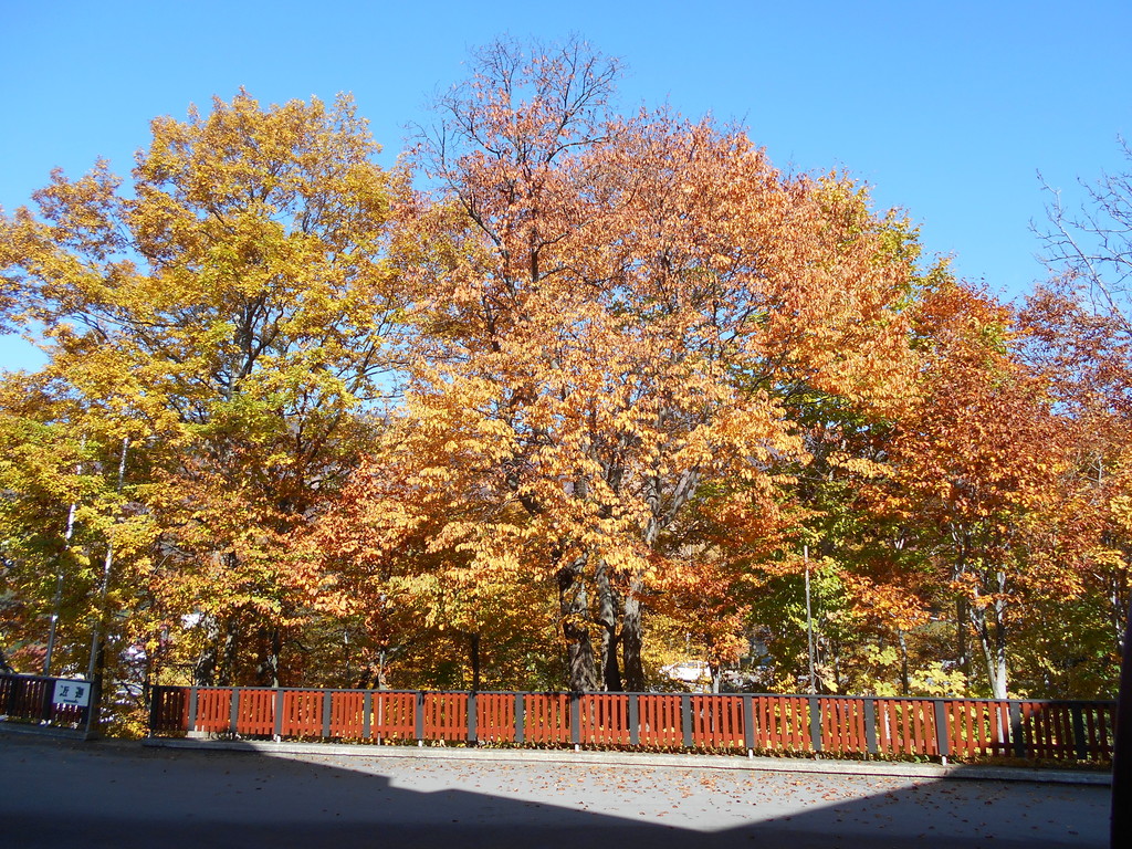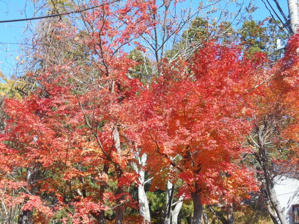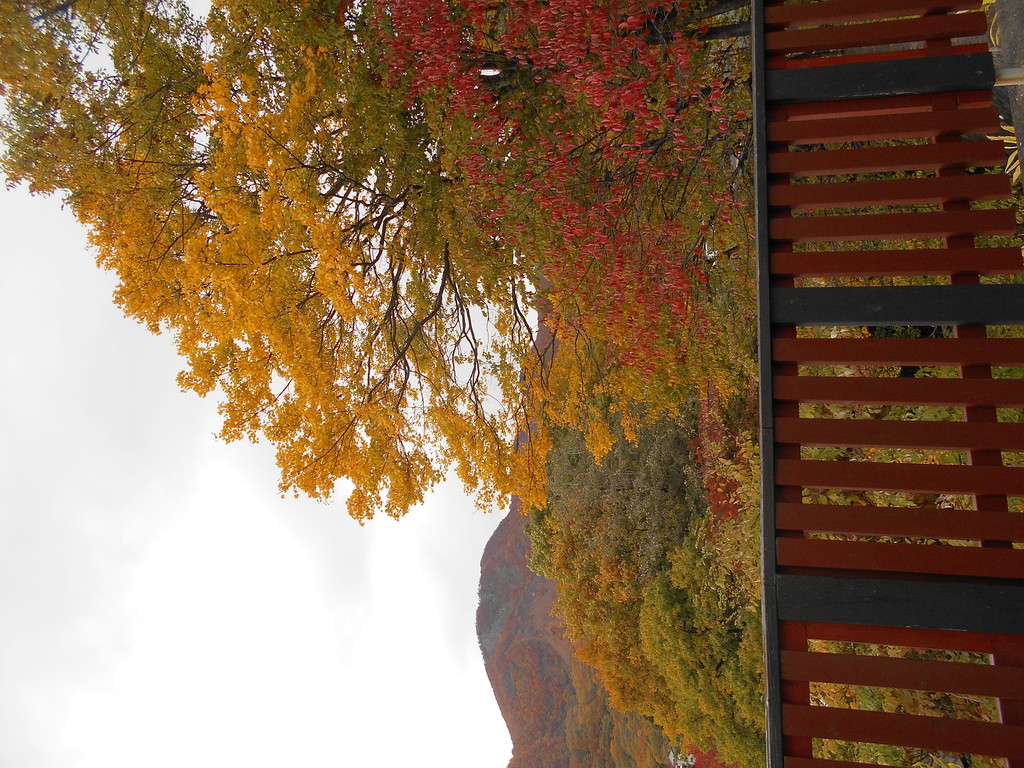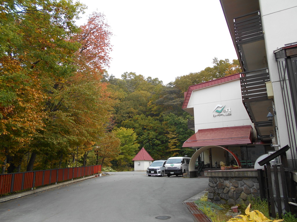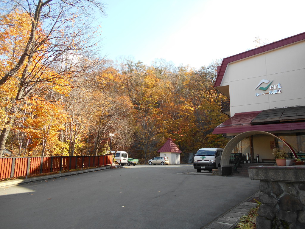玄関前落葉し後ろの山も落葉が始まりました、落ち葉が駐車場前面に落ちています。庭の植栽の雪囲いも終わりました!!!年末年始予約も多く入りいよいよスキーシーズン・10月19日から蔵王エコーラインは夕方5時から翌朝8時迄凍結と雪の為通行止めになりました。11月5日冬季道路閉鎖になります。