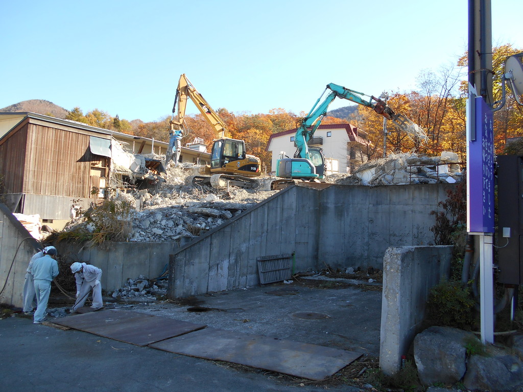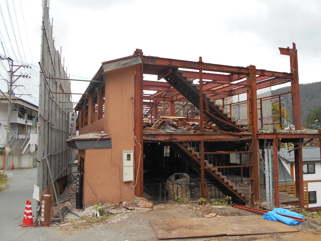 上の台南通りのもとさわ旅館解体工事進み鉄骨になりました!!!