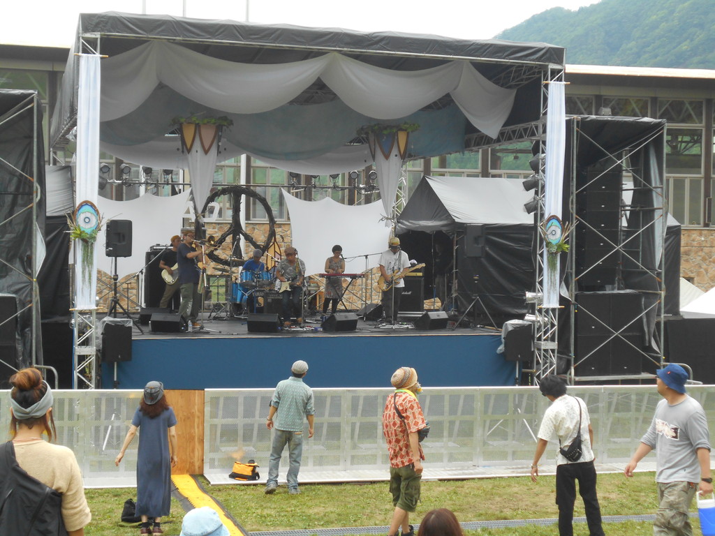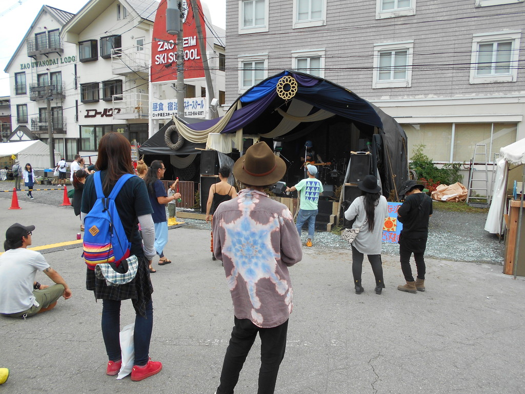 ル・ベール蔵王玄関前・朝7時・6度・晴・弱風、昨日8月21日〜24日迄上ノ台エリアで開催された「第10回蔵王龍岩祭結果報告」が届きました。来場者延べ7,000名・テント120張り・屋台出店37店舗・駐車台数1,000台・参加アーティスト100組以上・ボランティア40名でした。写真は上ノ台エリアのステージです。