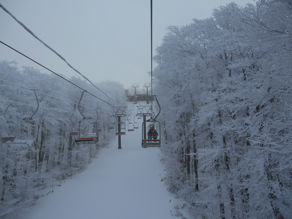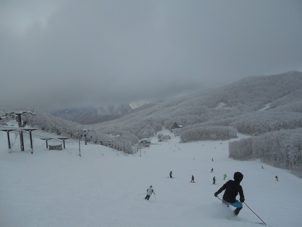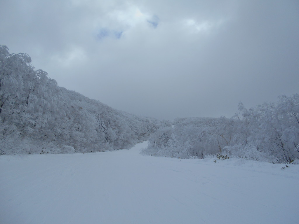 鳥兜ゲレンデ混雑、全山ブナ林一面霧氷が咲いていました!!!雪質最高!!!