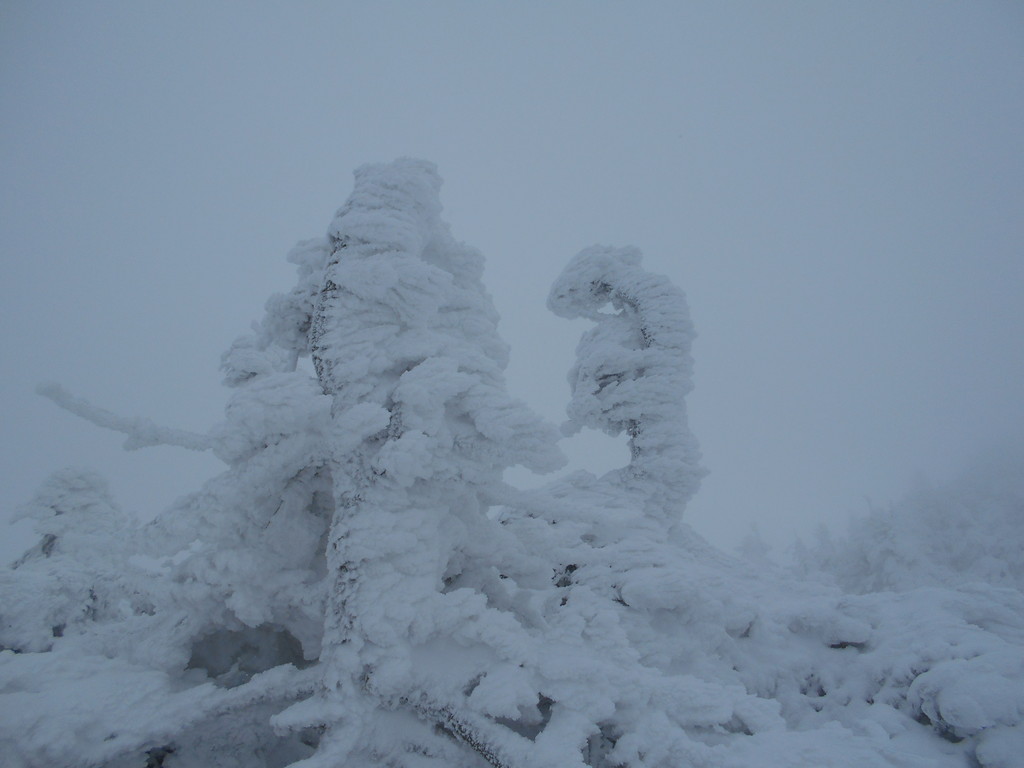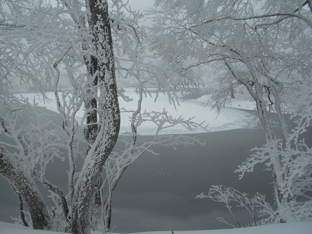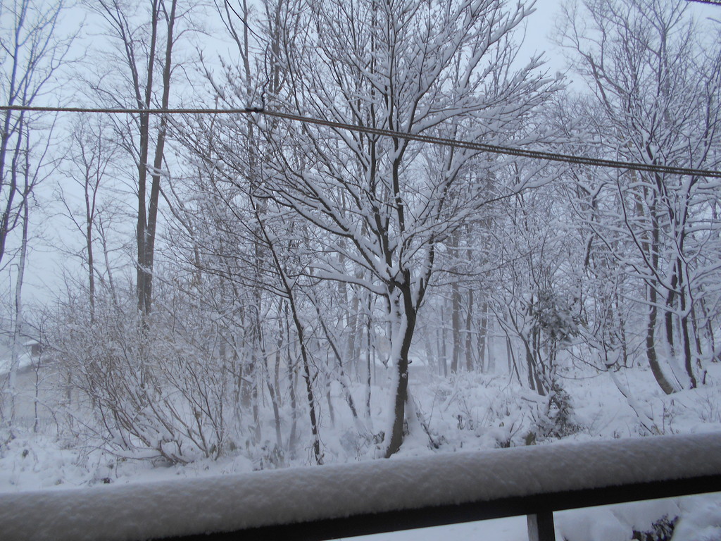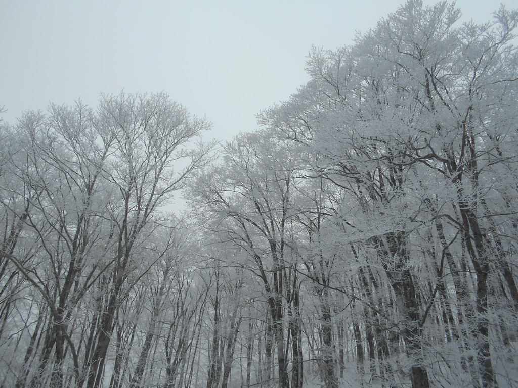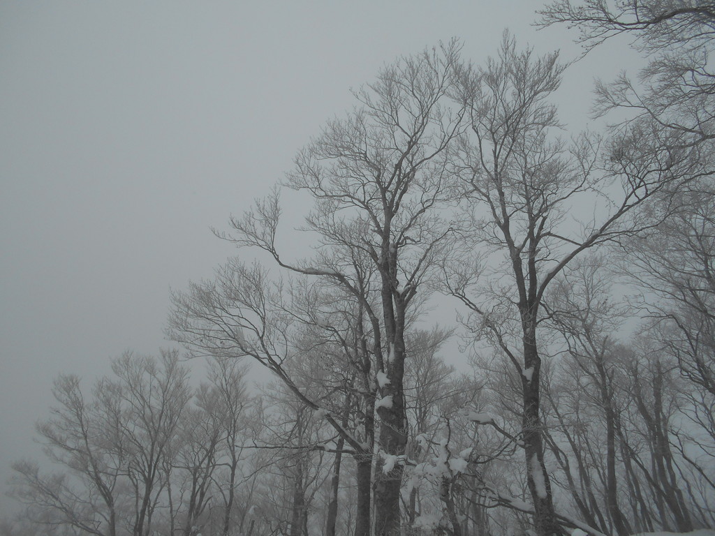 昨日のブナ林には水分の多い雪が枝に団子の様に着雪していました。