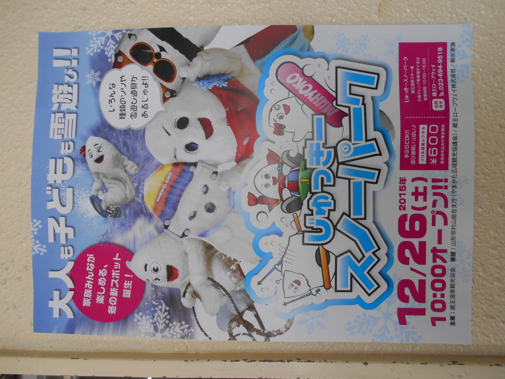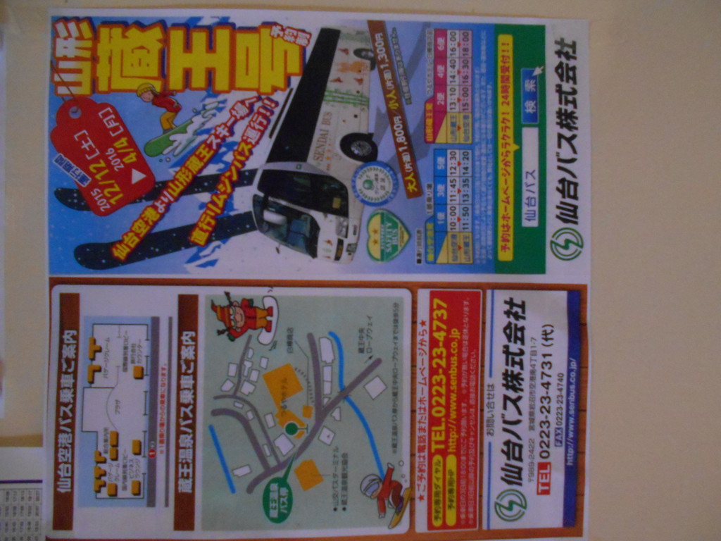 山形市蔵王ジャンプ台の命名権が高梨沙羅選手が所属しているクラレに400万円で決定来年1月1日より「クラレ蔵王シャンツェ」と決まりました。写真は仙台空港から蔵王温泉の定期バス「山形蔵王号」のパンフレットです。全国でスキー場滑れないところが多い中蔵王温泉スキー場は3キロの大平コースを含め充分滑走いただけます!!