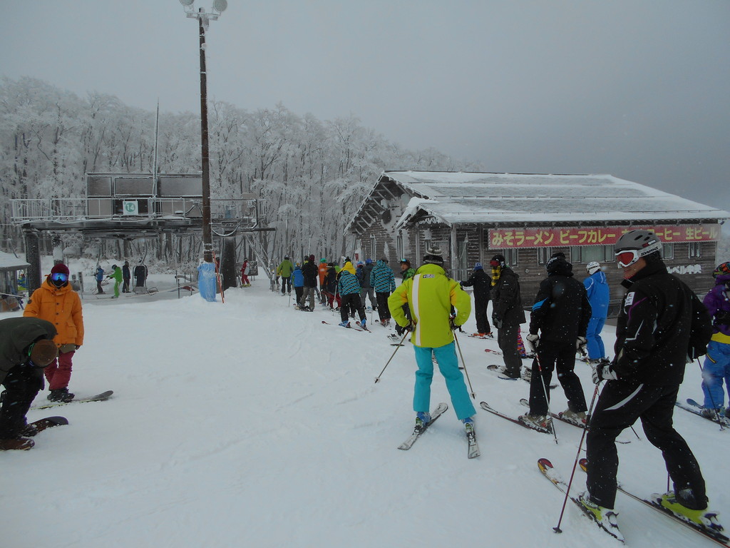 昨日の鳥兜リフトの長い乗車待ちの列・ダブル運転でもこの長さ年末年始なみ!!!