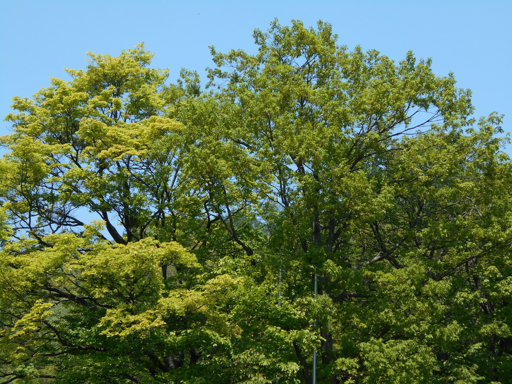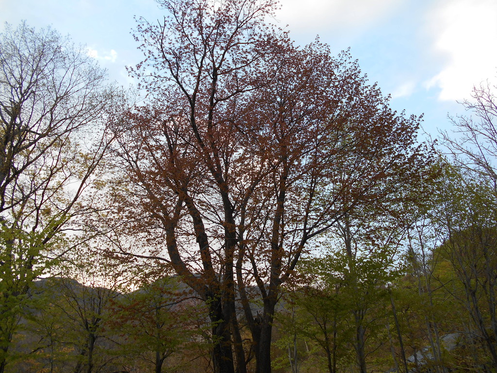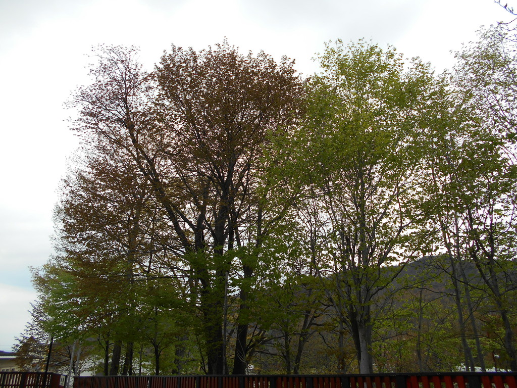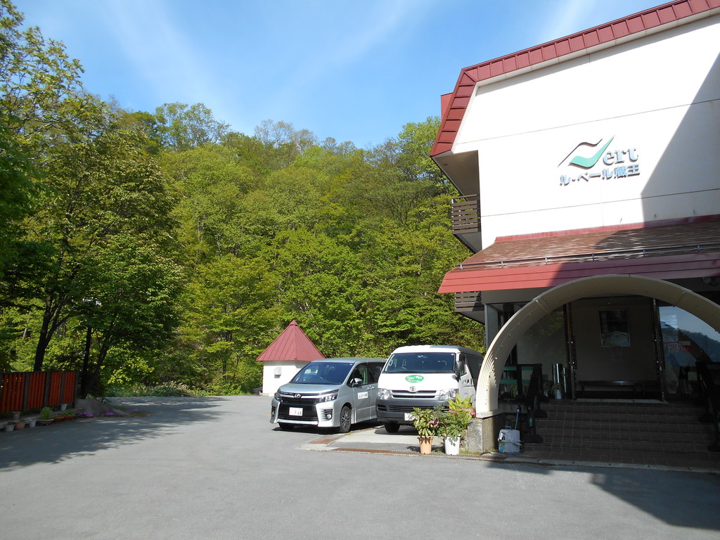 ル・ベール蔵王玄関前・朝7時・8度・晴・弱風(新緑が風に吹かれています)