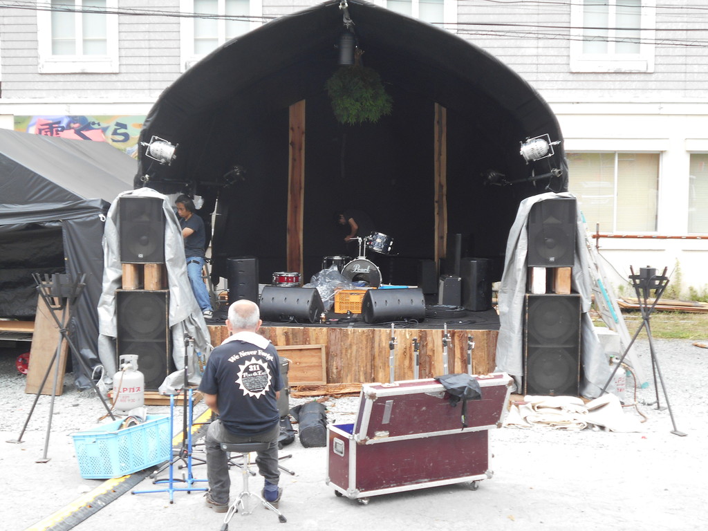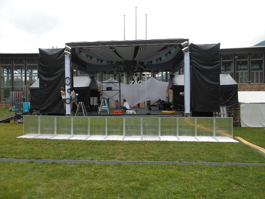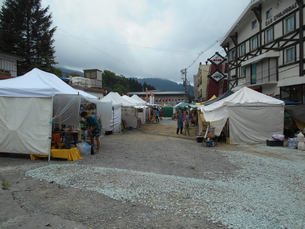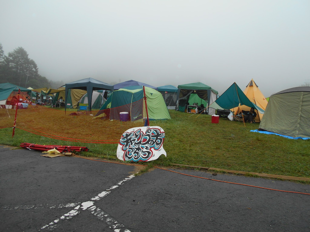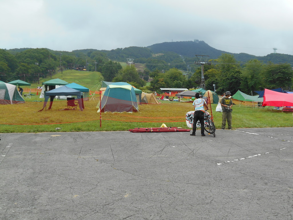 ル・ベール蔵王玄関前・朝7時・17度・濃霧雨・無風・蔵王温泉すっぽり雲の中ホワイトアウト・昨日午前中準備中の上の台ゲレンデに行って来ました。メインステージ他2ステージ準備中でした、テント設営エリアに30基以上のテントが張られていました。21時でステージの演奏は終わりますがロッジイザワ・ジンギスカンロッジ内の会場は昨日は深夜1時・今夜は深夜3時頃迄演奏???(本部に要問合せ)