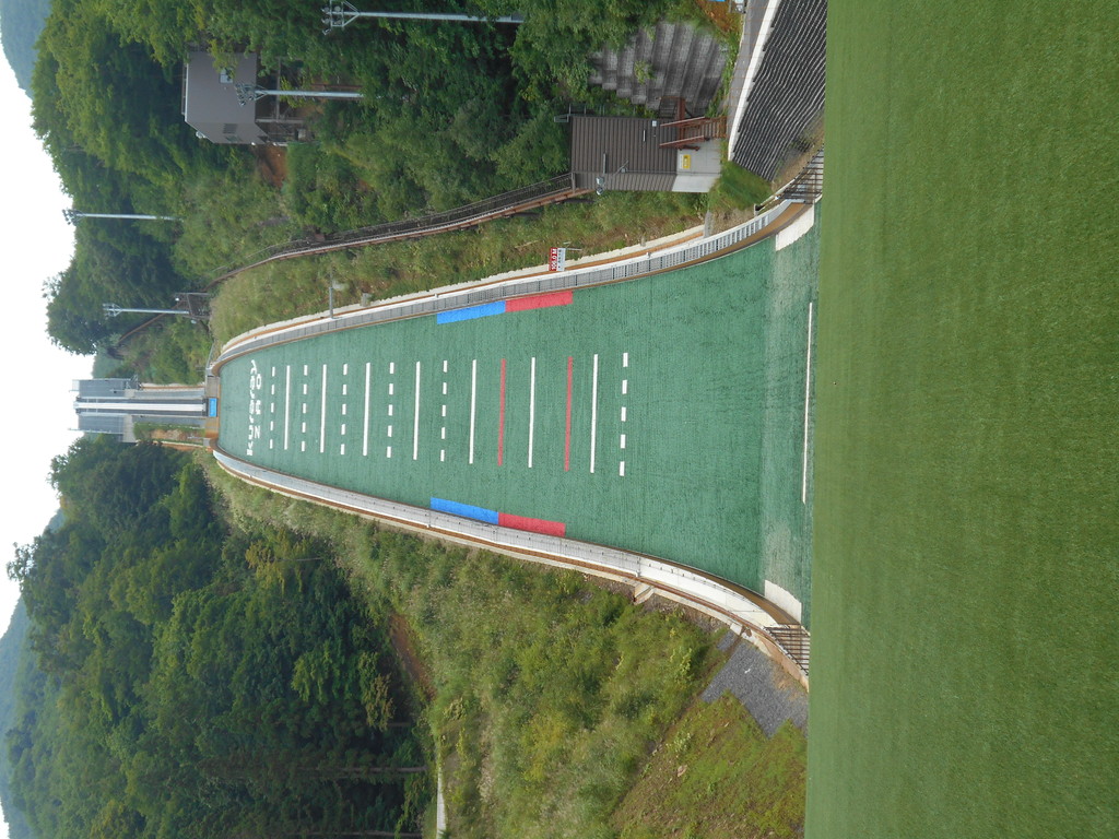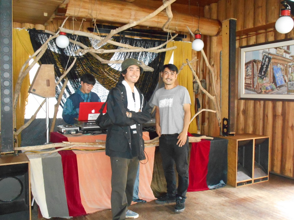龍岩ゲレンデにあるステージ準備中のスタッフがポーズ!!!
