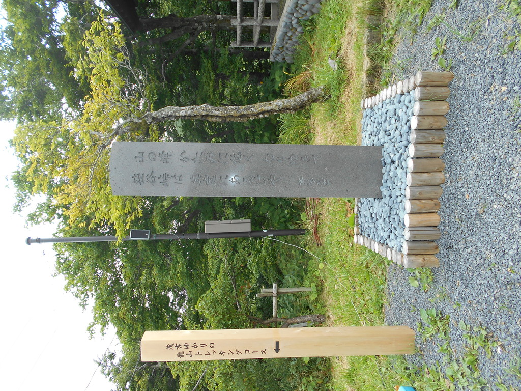 蔵王第二小学校と荒正さん協賛・齋藤茂吉翁が龍山登山記念の木柱が腐り建て替えの蔵王山石を使って作製した歌碑です、ヘリコプターで龍山山頂に運ぶまで蔵王中央高原駅広場に仮設置しました。