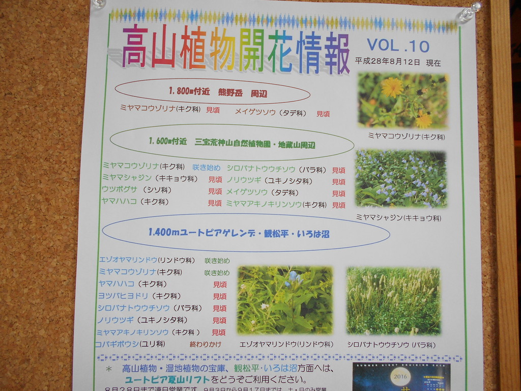 高山植物開花情報VOL.9号をロービーに掲示しました!!!