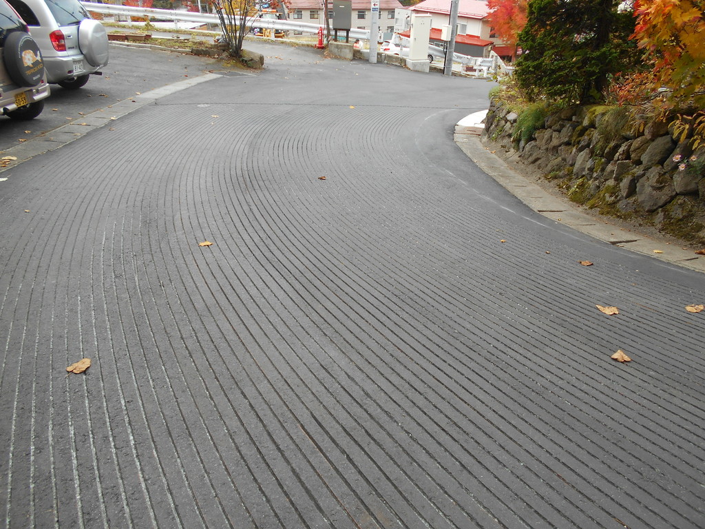 ル・ベール蔵王玄関前・朝7時・曇・無風、田中こけし店上の上の台南通り消雪工事第2期工事は最上屋さんから源七露天の湯入り口前迄のカーブです。源七露天の湯・蔵王温泉大露天風呂には蔵王温泉バスターミナル前からの上の台北通りからジュピア迄行き酢川温泉神社から行く事になります!!!