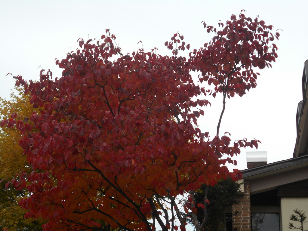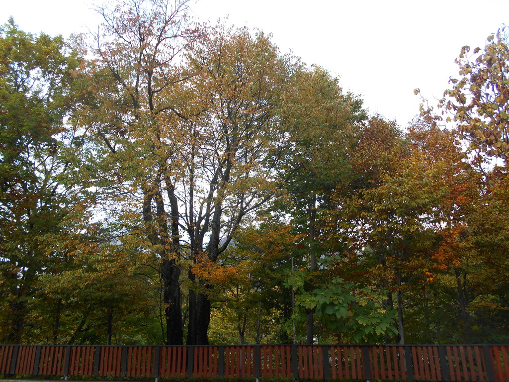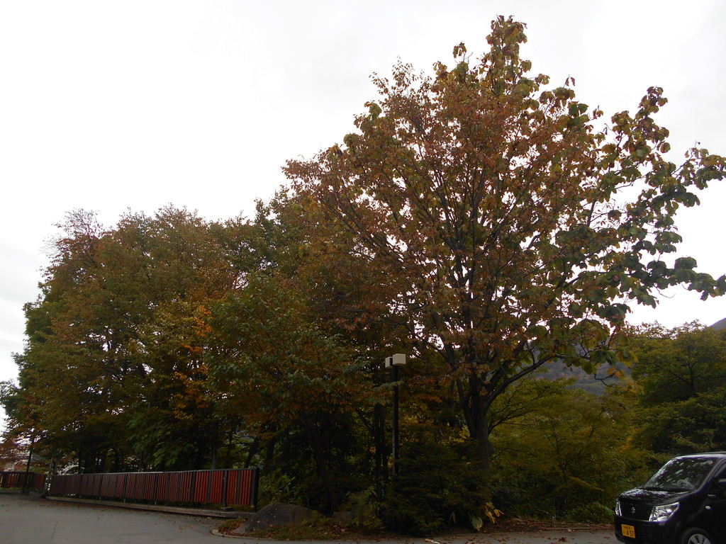 標高860m中森ゲレンデ脇の朱が綺麗な色づいた木です!!!今日のトレッキングは防雨着プラス防寒着と手袋が必要です、中央高原のブナ林の黄葉の散策路トレッキング森林浴と紅葉狩りがお楽しみいただけます!!!!