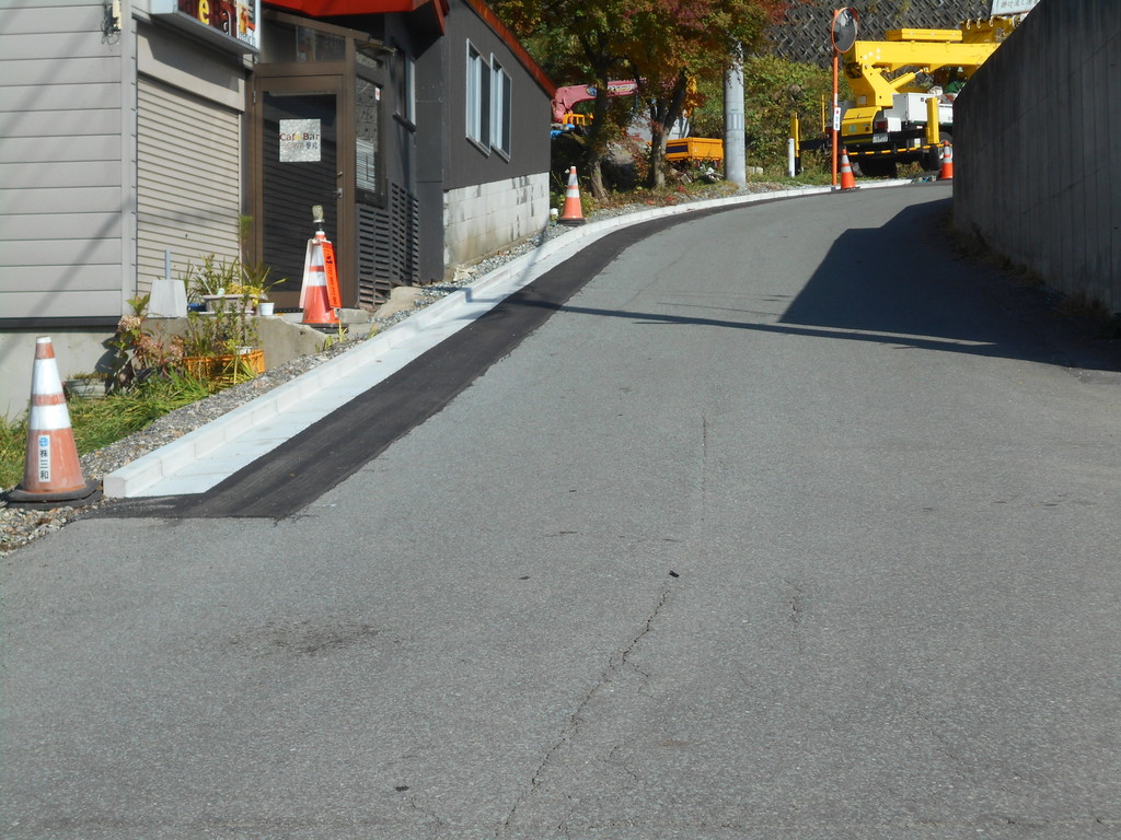 左は最上屋さんです!!!右に曲がるカーブ冬のスリップ事故多発道路です!!