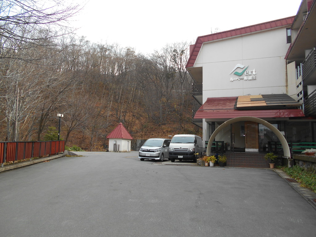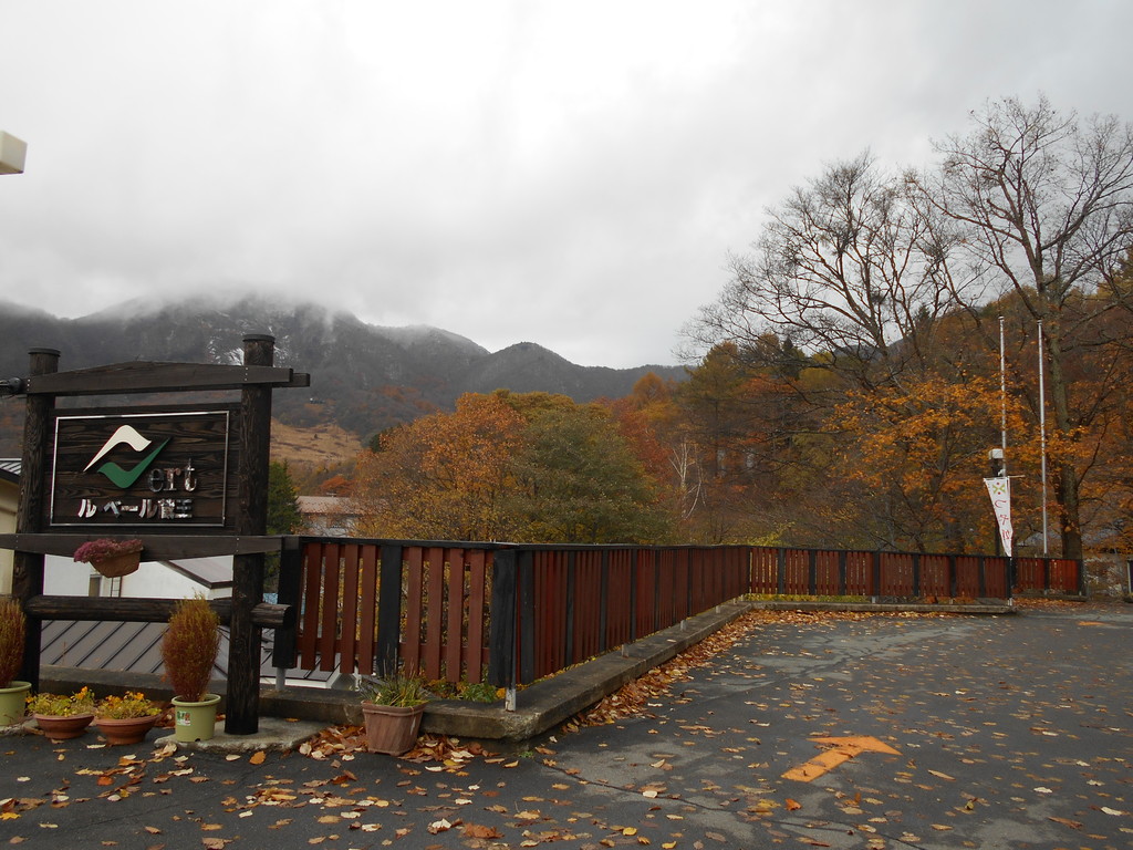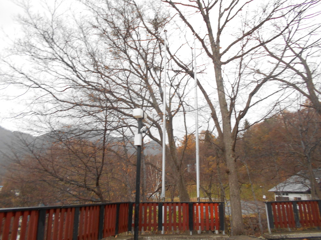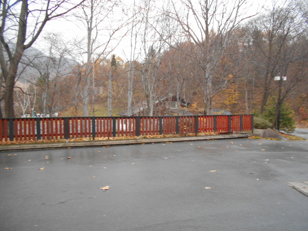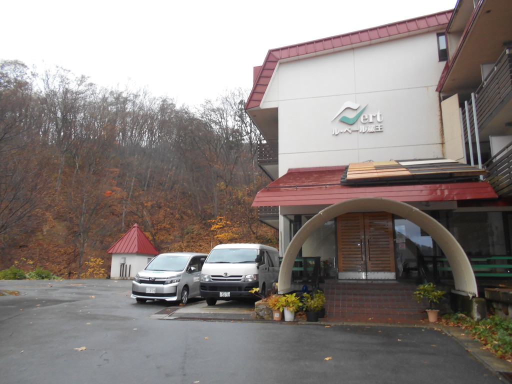 ル・ベール蔵王玄関前・朝7時・8度・曇雨模様・弱風・天気予報では山は降雪・標高1,000m以上濃霧・龍山、横倉山雲の中・11月1日より蔵王名物蔵王温泉大露天風呂朝6時30分〜夕方17時30分迄オープンになりました。11月23日迄営業予定ですが降雪により早まるか???