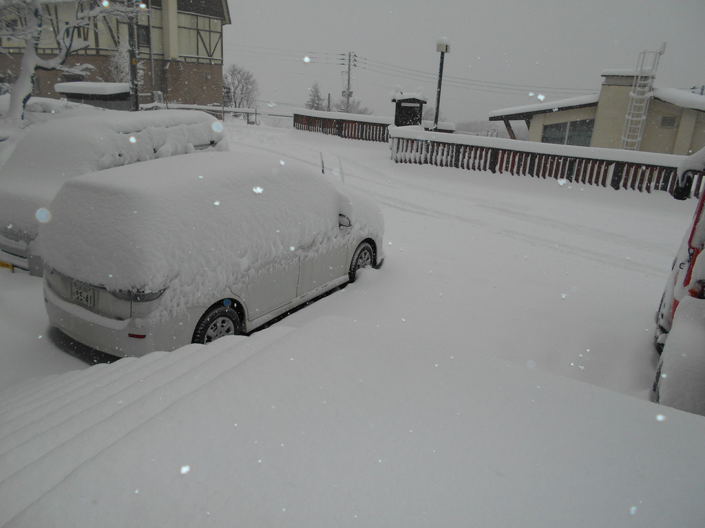 ル・ベール蔵王玄関前・朝7時・-1度・雪・積雪5cm・積もる雪降りです・標高950m以上濃霧・横倉山雲の中・蔵王温泉名物蔵王温泉大露天風呂風呂昨日まで営業のお礼と11月24日〜来年4月下旬迄冬季閉鎖のFAXが送信されました!!!隣の源七露天の湯は冬でも営業しています。毎週水曜午前中清掃の為クローズしますがそれ以外は朝9時〜21時迄オープンしています。