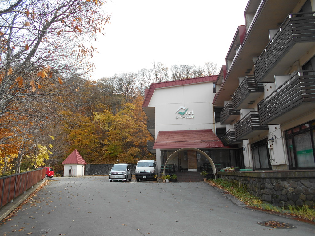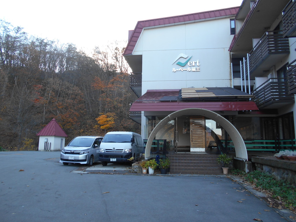 ル・ベール蔵王玄関前・朝7時・8度・秋日和・秋の陽がサンサン視界良好青空・微風