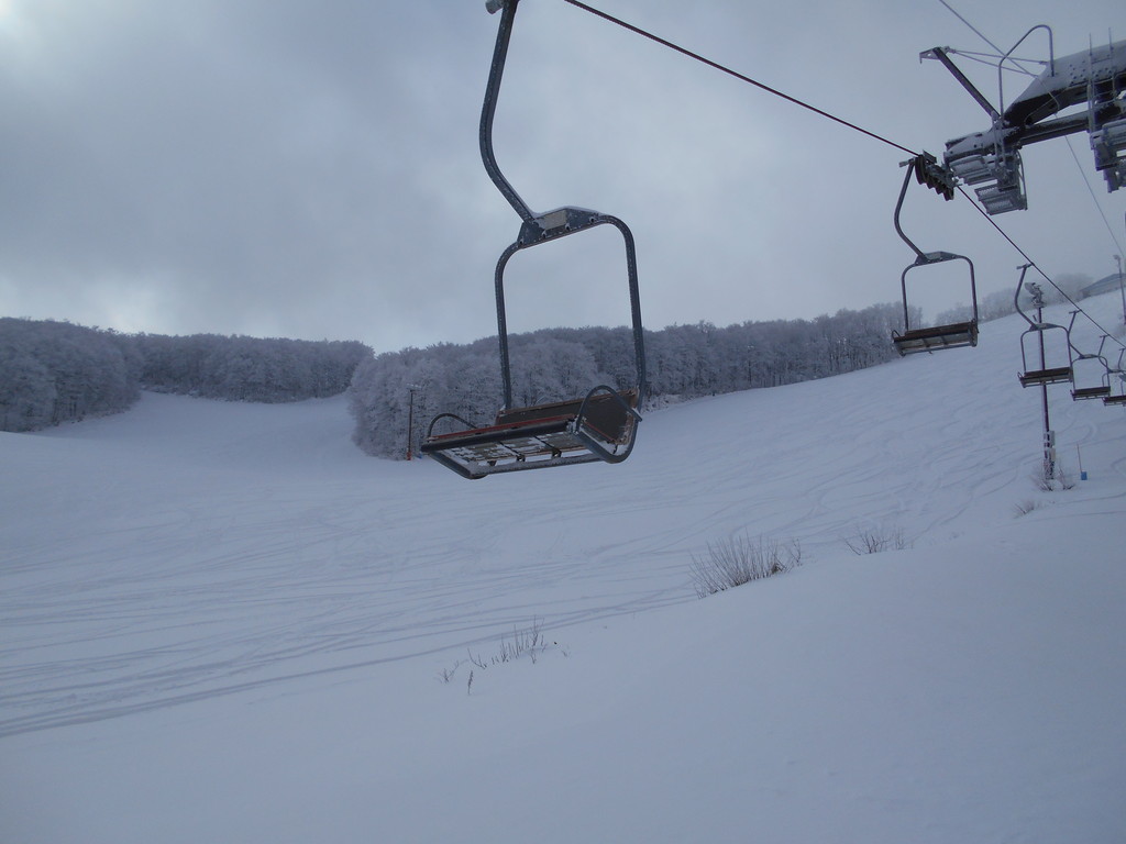 ル・ベール蔵王2階ベランダから中森ゲレンデ方面です!!!今日の標高1,300mの樹氷高原・中央高原のトレッキングはホワイトアウトと寒さで防寒と防風着が必要です、標高1,661mの地蔵山頂は雪が降る様です???