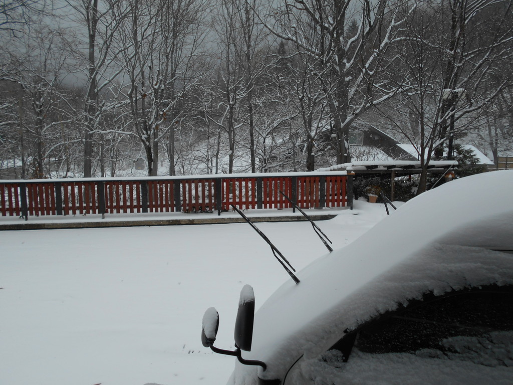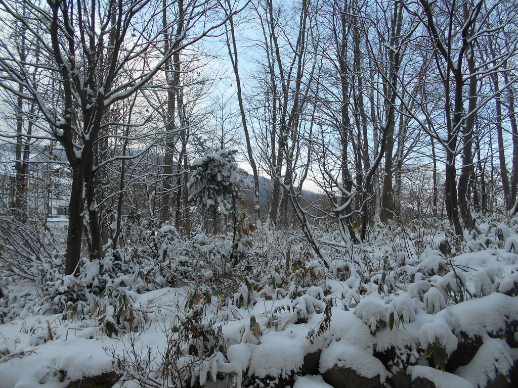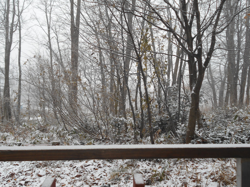 今朝2度と今シーズン一番寒い朝・庭の落葉の上に雪が積もっていました!!!