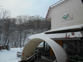 ル・ベール蔵王玄関前・朝7時・5度・曇・中風(冷たい風で防寒着・手袋必要)・今日は蔵王ロープウェイ・蔵王スカイケーブルが営業しています。2017/2018宿泊者リフト券販売価格昨年と同額で12月21日〜フロントで代行販売します。1日券5,000円⇒4,600円・2日券9,200円⇒8,500円・3日券12,900円⇒12,000円です。写真はル・ベール蔵王事務室から中森ゲレンデ方面を写しました!!!