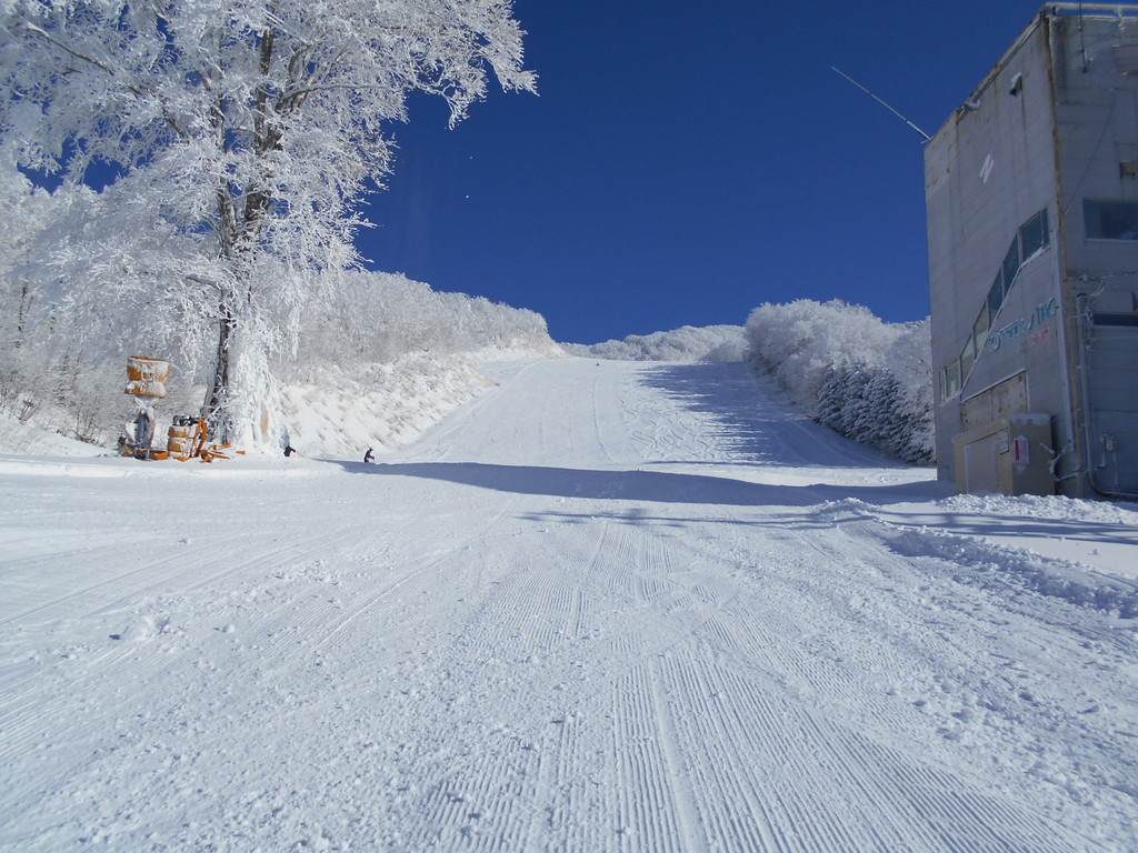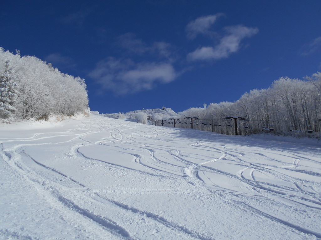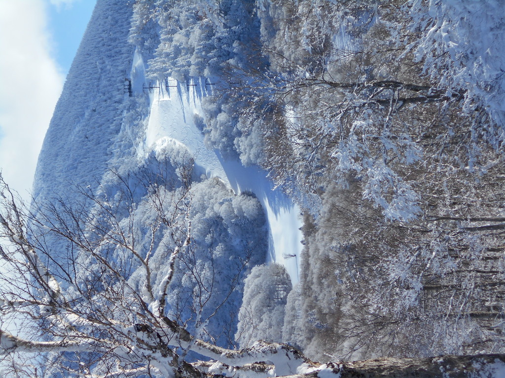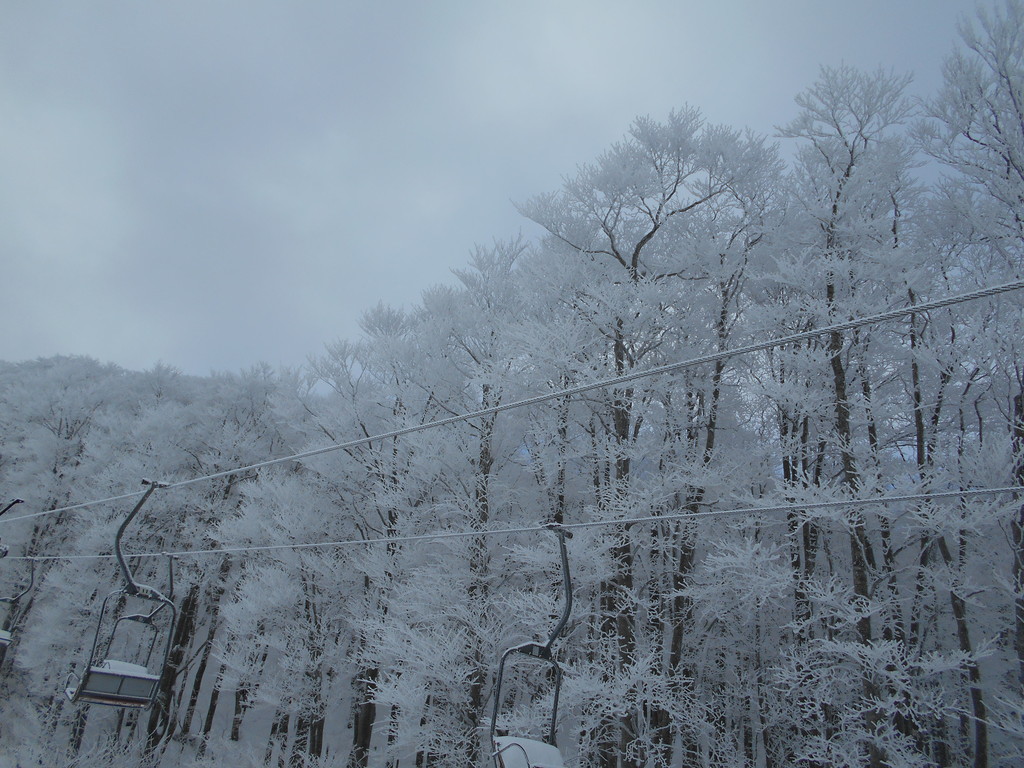 昨日は中森ゲレンデ両側のブナ林霧氷が咲きバーンは新雪が積もり柔らかい軽い雪が15cm以上のっかっていました!!!