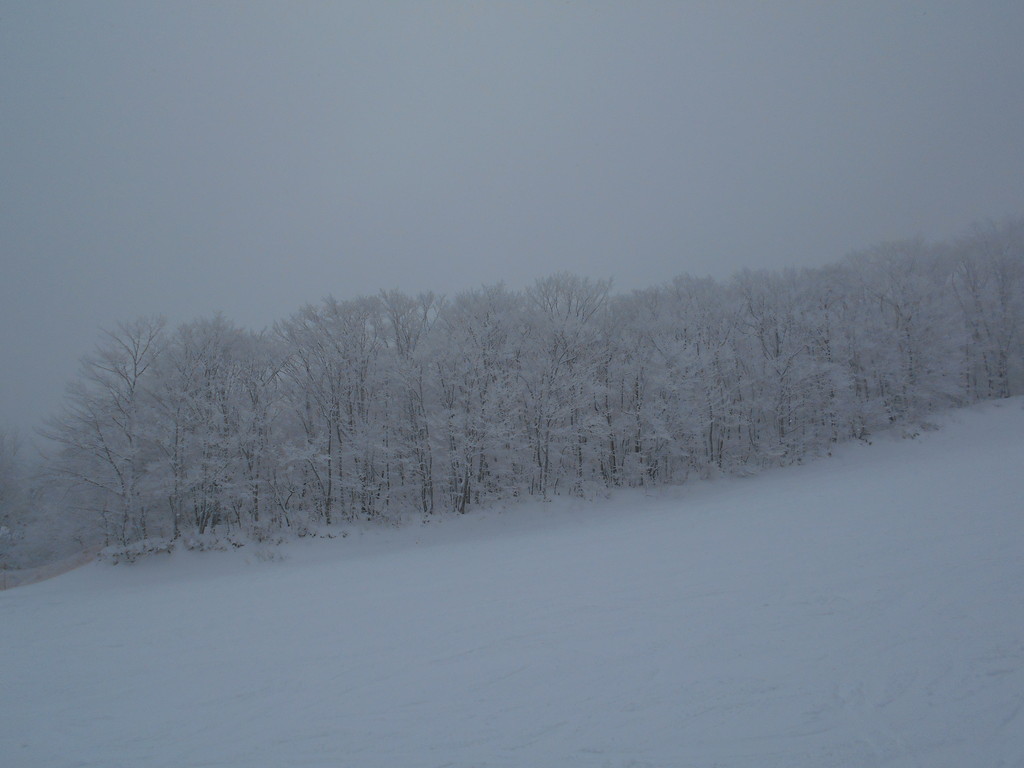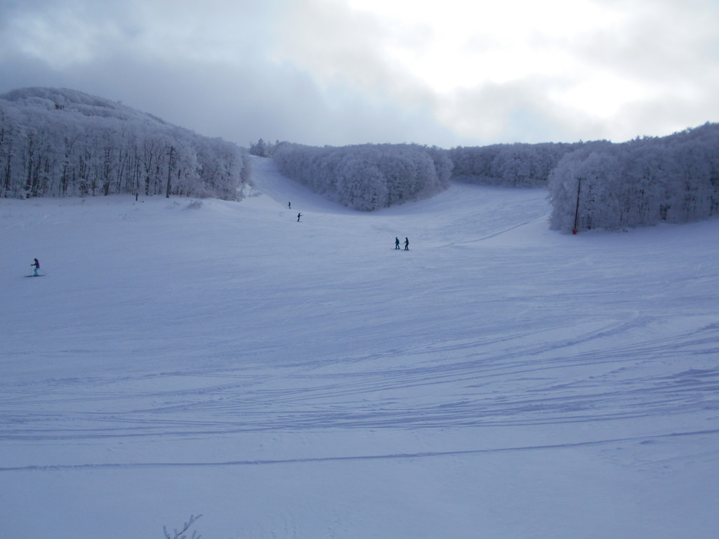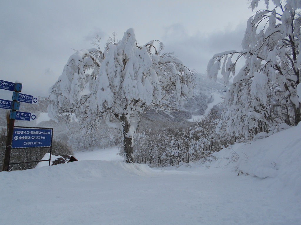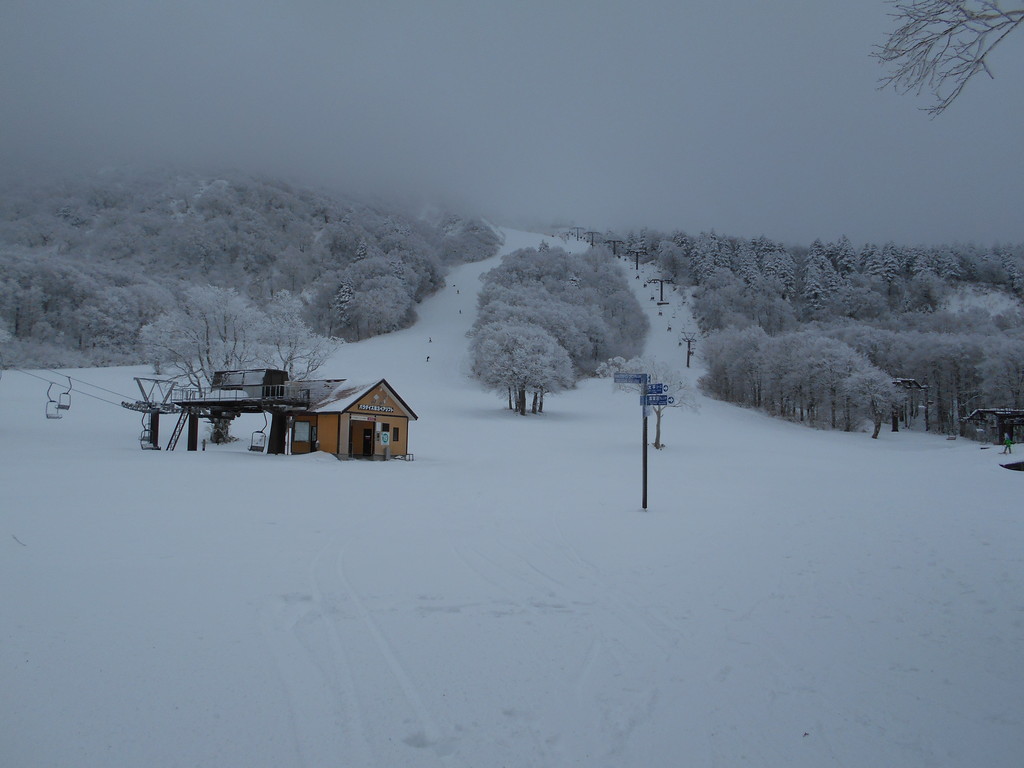 昨日は中森ゲレンデ両側のブナ林霧氷が咲きバーンは新雪が積もり柔らかい軽い雪が15cm以上のっかっていました!!!