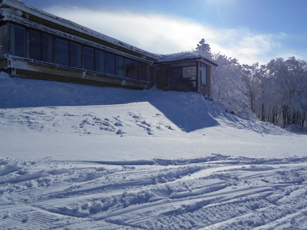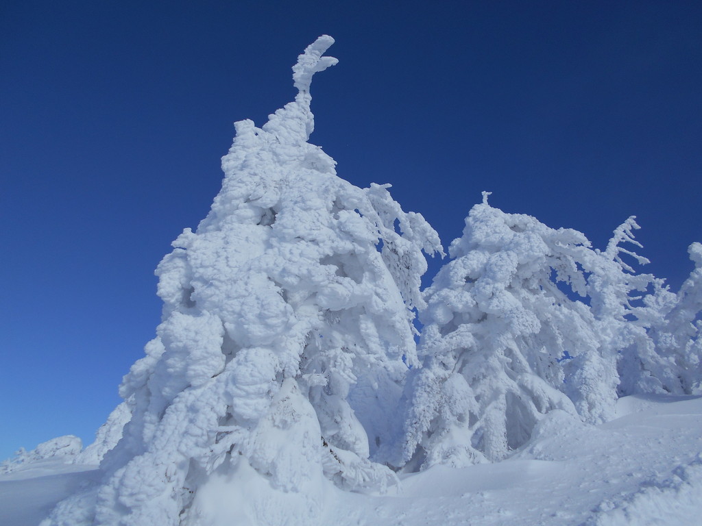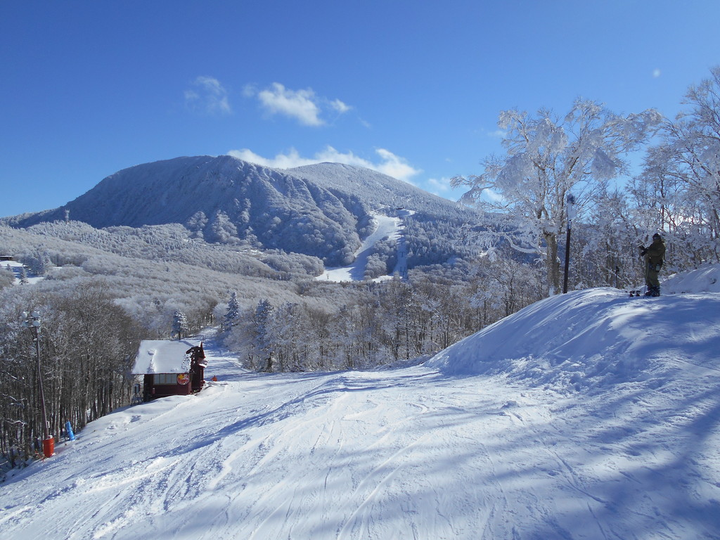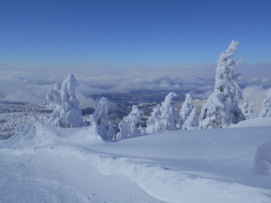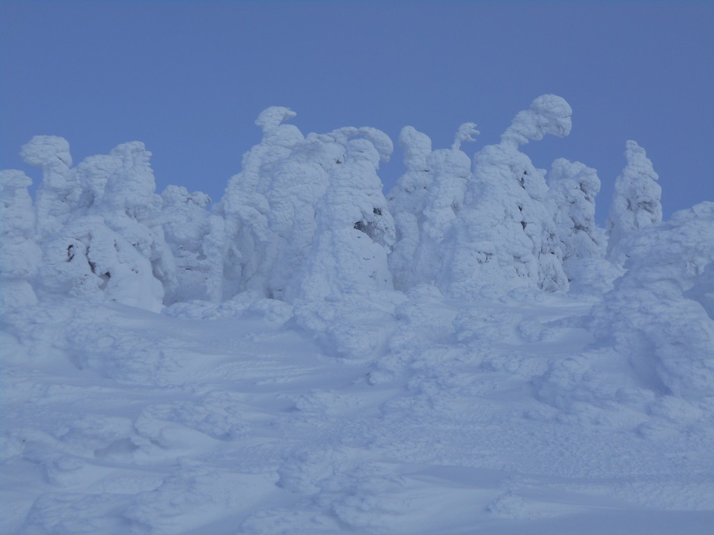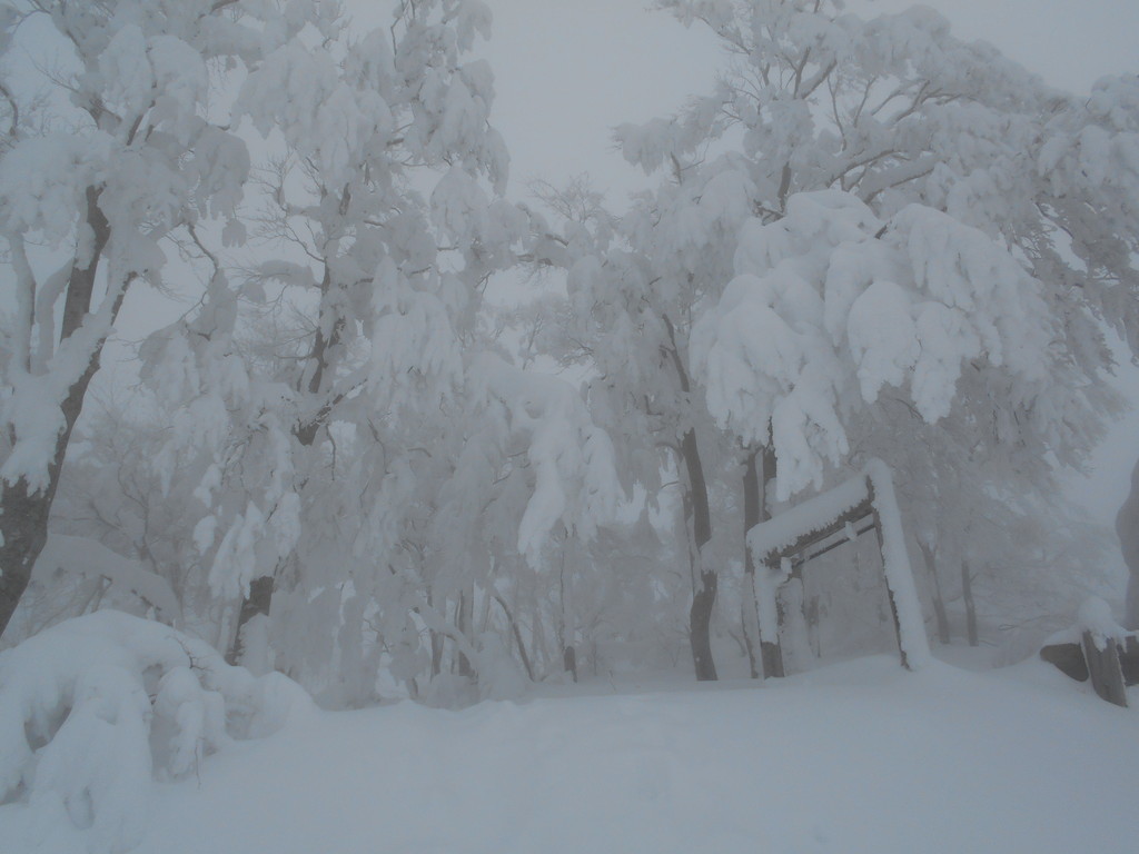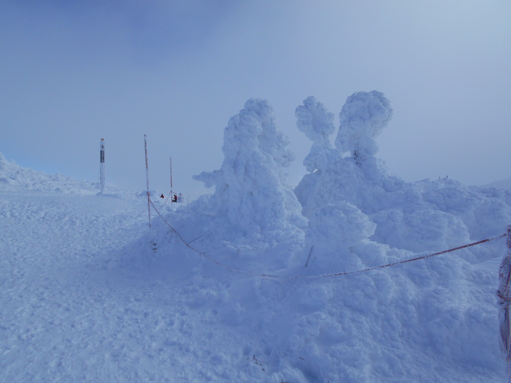 地蔵山頂に樹氷が出来ました。地蔵山頂からのロングコース樹氷原コースユートピアまでは滑走可能です。地蔵山頂からザンゲ→トニーザイラーコース→パラダイスを歩き→大平コース→上の台ゲレンデのロングコース滑れます!!!