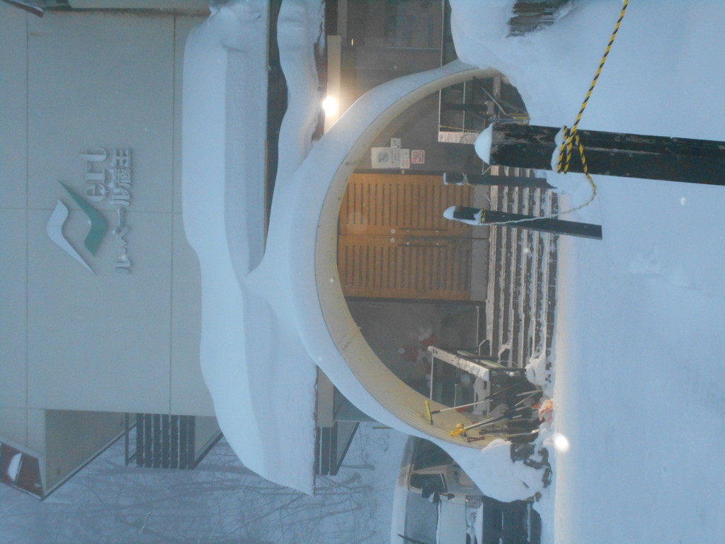 ル・ベール蔵王玄関前・朝・7時・−1度・曇・今日はリフト3本営業??昨日のスキーは開きは最近では珍しい雪の多い上の台ゲレンデで行なわれました!!!