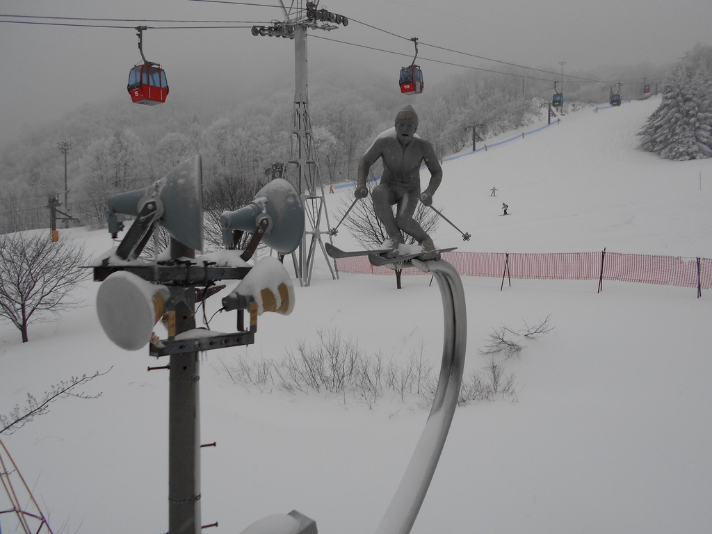 ハーネンカムの中間にある「乙女の像」に参拝して来ました!!!地元のアルペン選手が事故で無くなり親御さんが建立した像です。ハーネンカム本コースとサブバーンの国体リフト乗り場向かいにあります!!!
