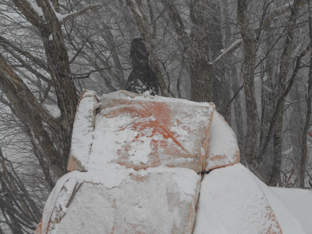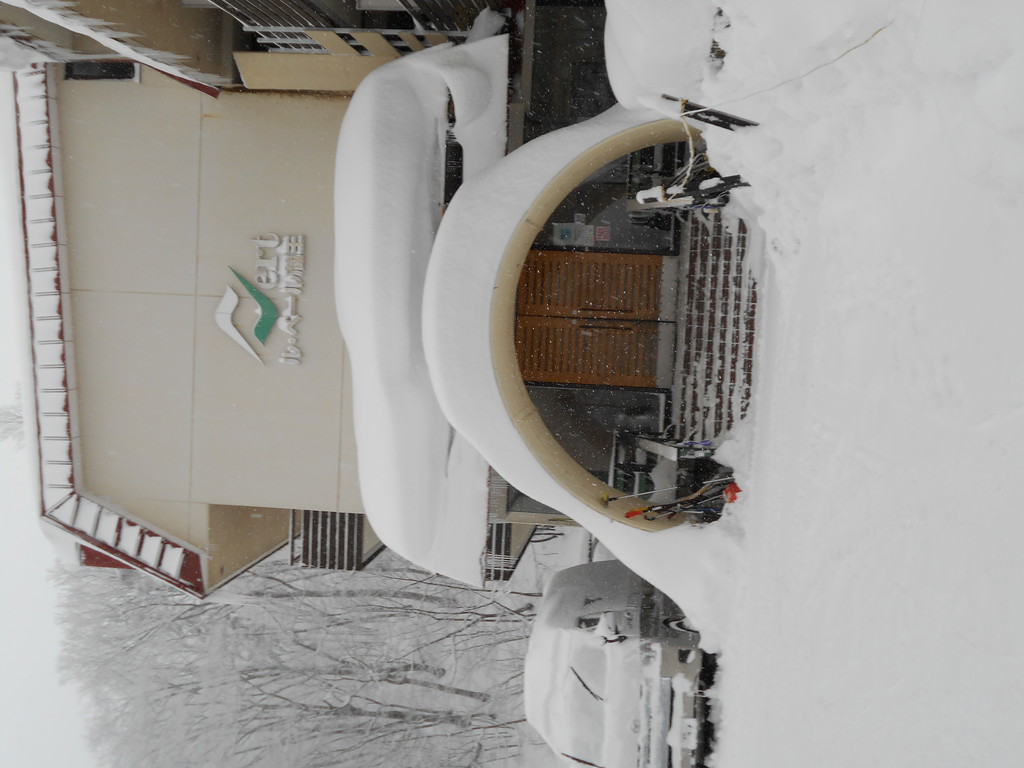 ル・ベール蔵王玄関前・朝7時・ー5度・雪・標高1,000m以上濃霧雲の中、新雪10cm
