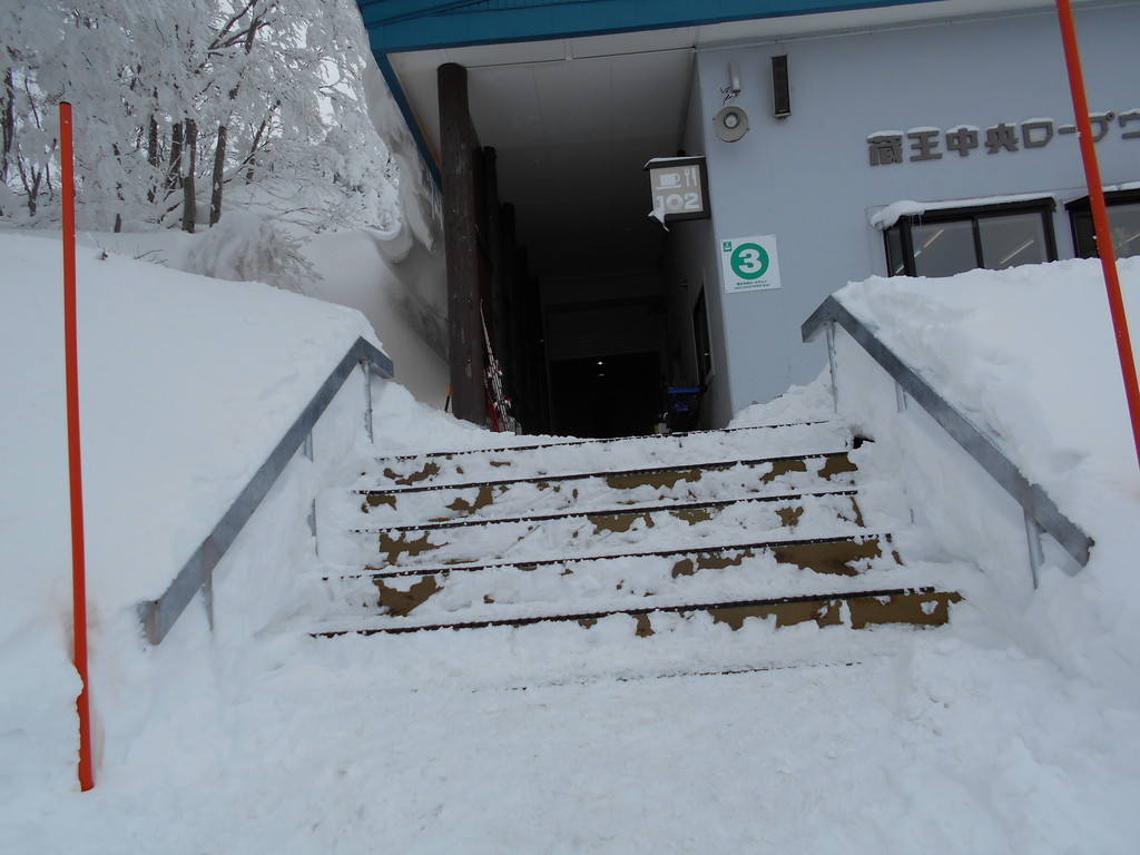鳥兜駅階段9段雪ノ下に埋まり5段でゲレンデに行けます。