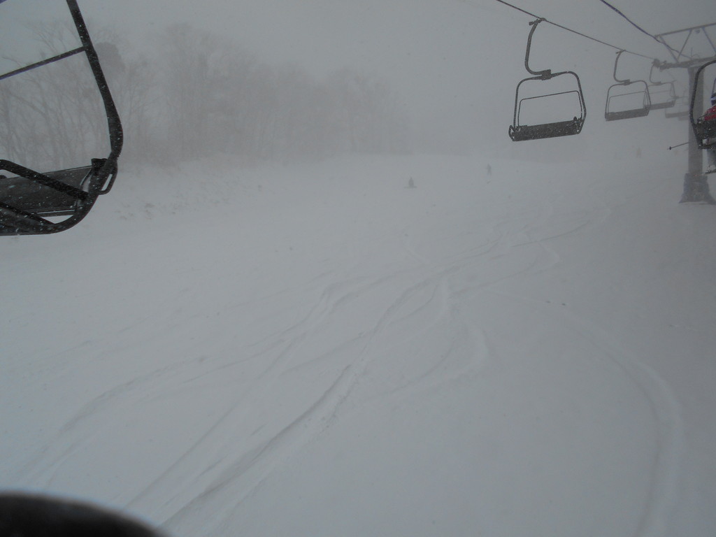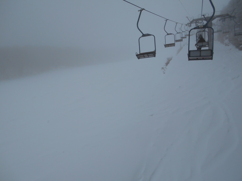 今朝暖かい朝−1度・雪・新雪7cm・標高1,000m以上濃霧・ホワイトアウト!!!